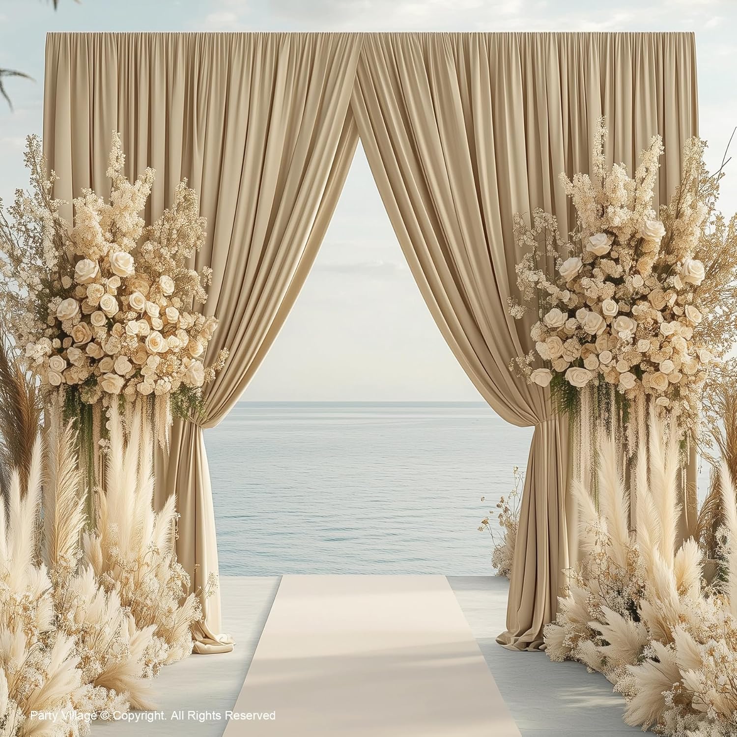 PartyVillage 20ft×15ft Beige Backdrop Curtain for Wedding Parties, 4 Panels Wrinkle Free 15 FT Long Polyester Photo Backdrop Drapes Back Drop Cloth for Birthday Photography Background