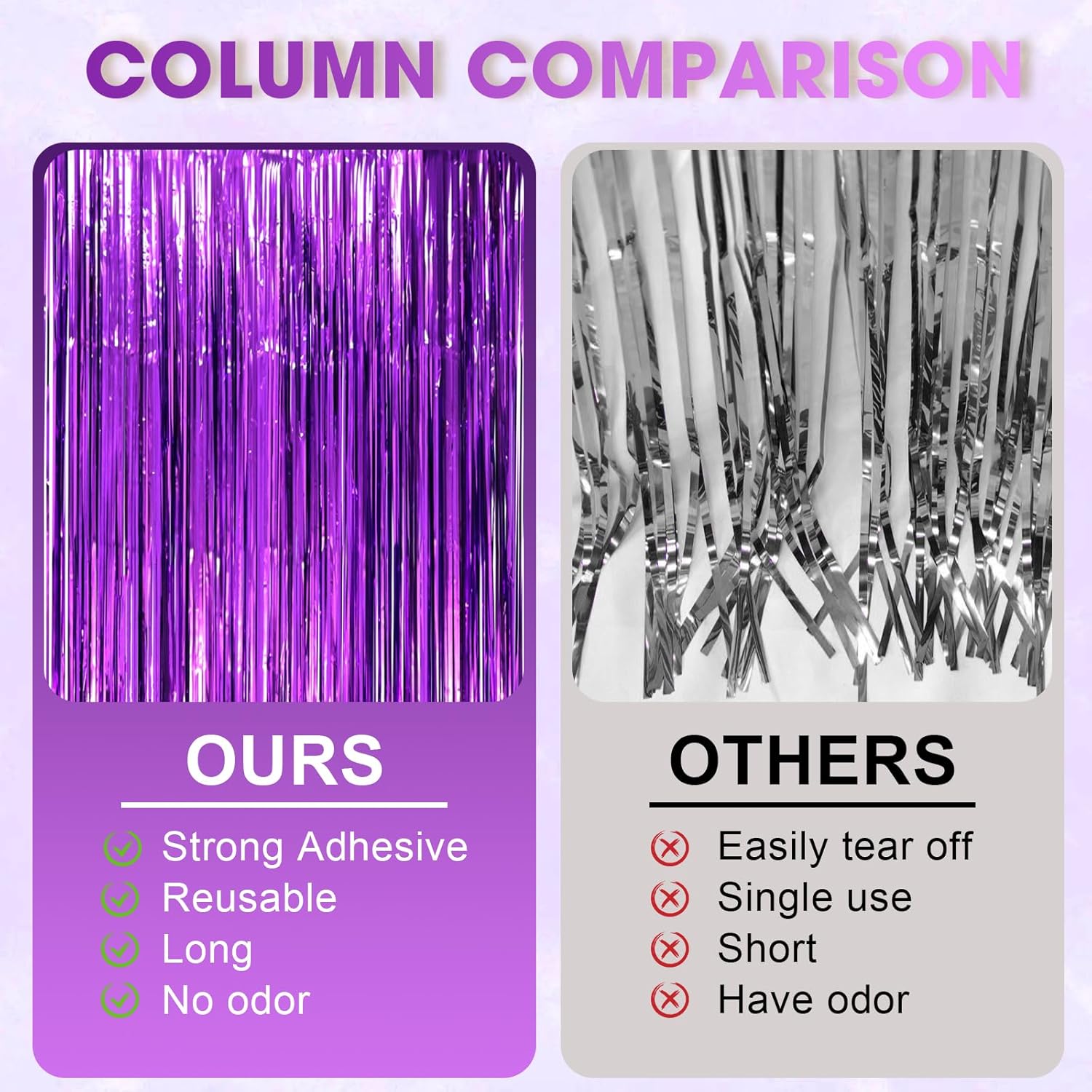2 Pack Purple Tinsel Foil Fringe Curtains, Purple Party Decorations, Metallic Tinsel Party Streamers Backdrop for Halloween Mermaid Bachelorette Graduation Party Decorations