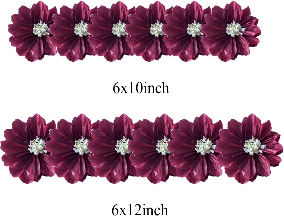 - Tissue Paper flower kit, including 12PCS paper pom poms-burgundy kit, ASSEMBLY NEEDED, following the DIY steps or instruction, then you will get a beautiful paper flower. party paper flowers decorations, maroon paper flowers, maroon paper pom poms, burgundy paper flower decorations