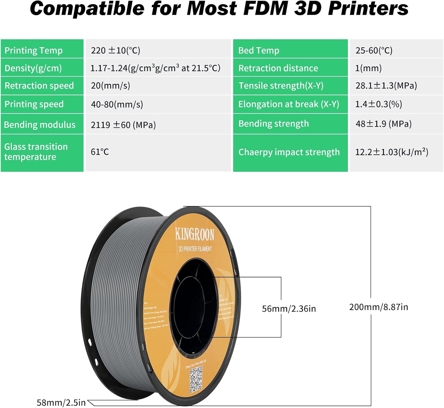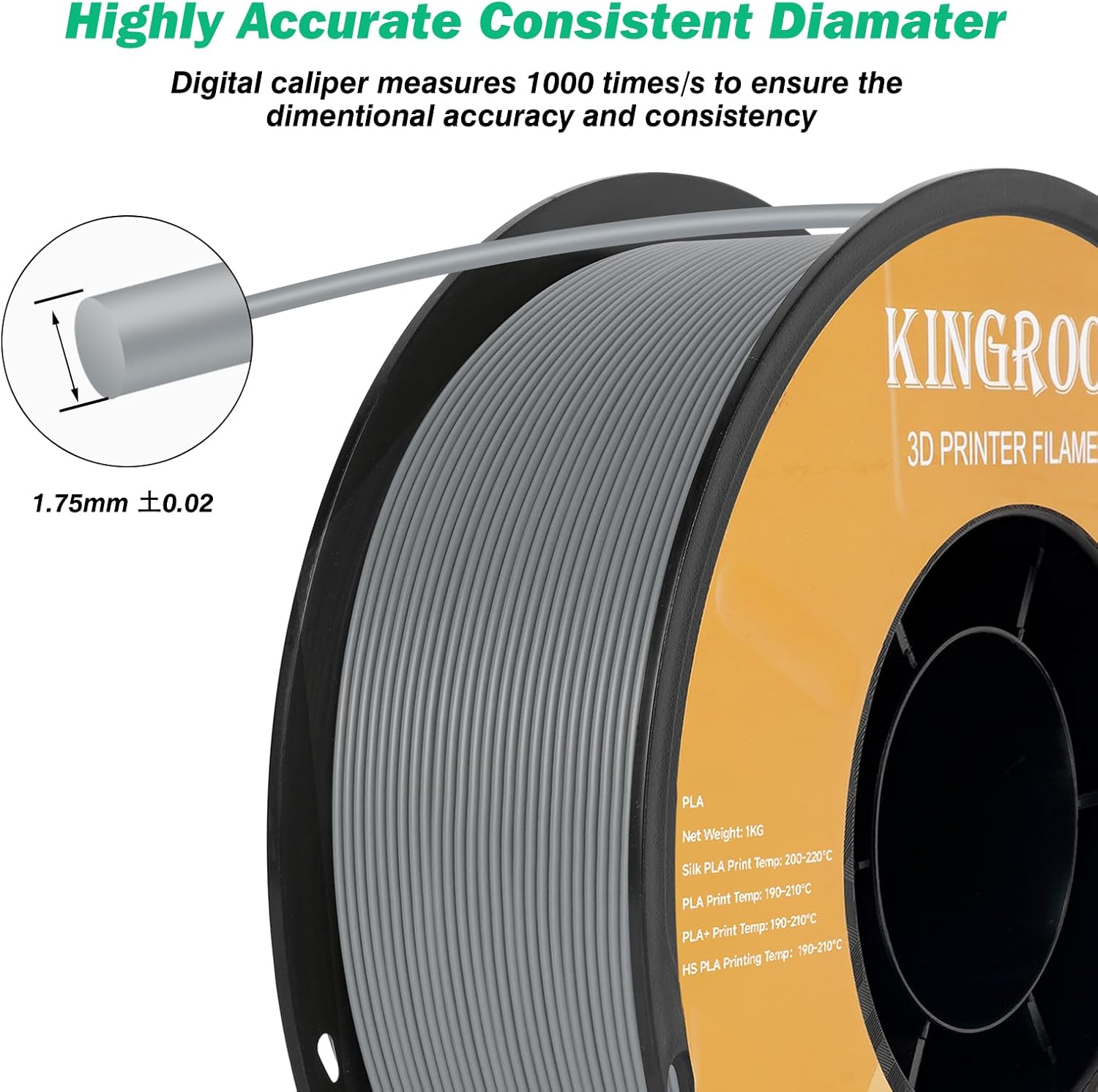 - 【Precise Dimensional Accuracy】With a dimensional accuracy of +/- 0.02 mm and a 1.75 mm diameter, Kingroon PLA filament ensures smooth, stable printing. Each spool is carefully monitored with advanced technology to maintain consistency and quality, making it compatible with most FDM 3D printers.