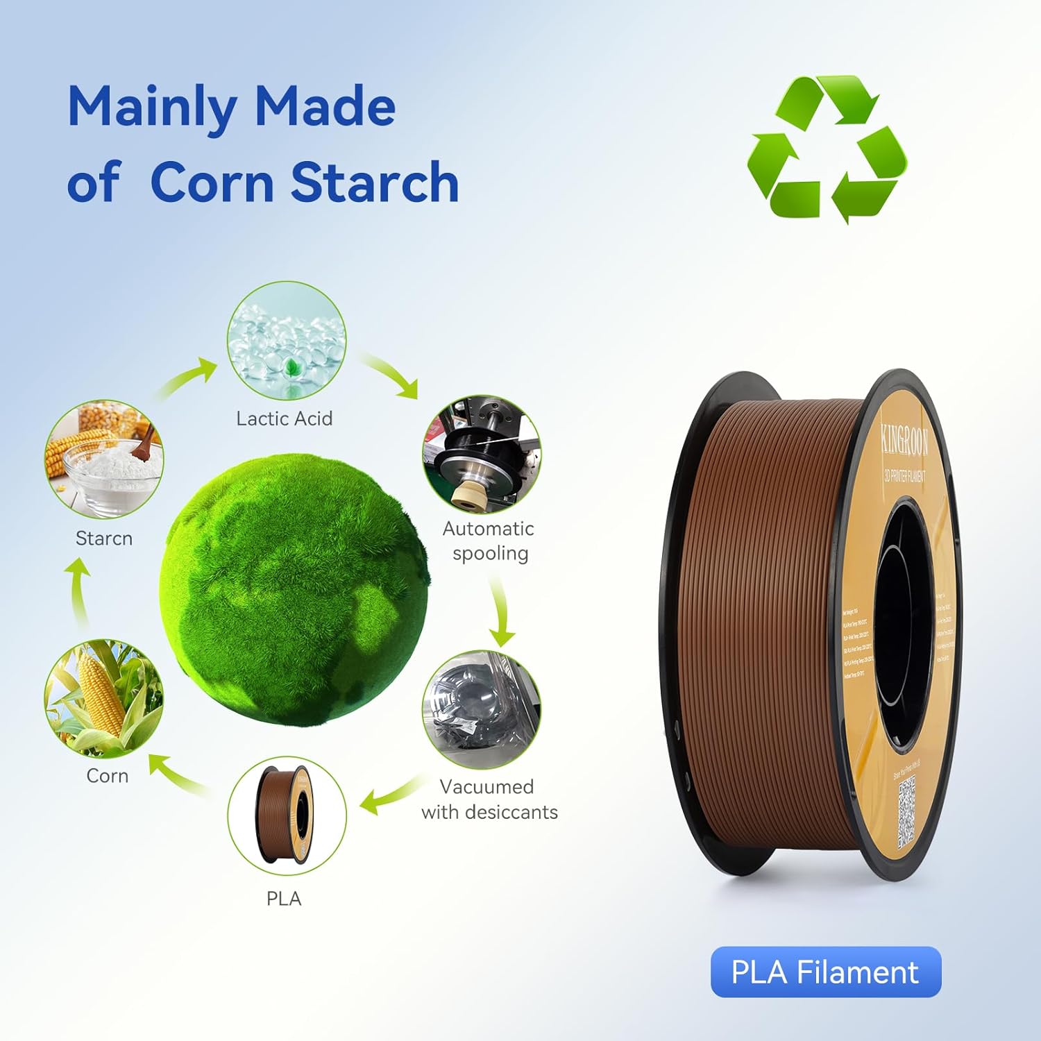- 【High-Quality PLA Material】High-Quality PLA Material: Kingroon PLA filament is made from premium PLA, offering a lower melting temperature, minimal warping, and shrinkage, and is odorless during printing. It provides a glossy surface finish, making it ideal for 3D printing enthusiasts, from beginners to experienced users.