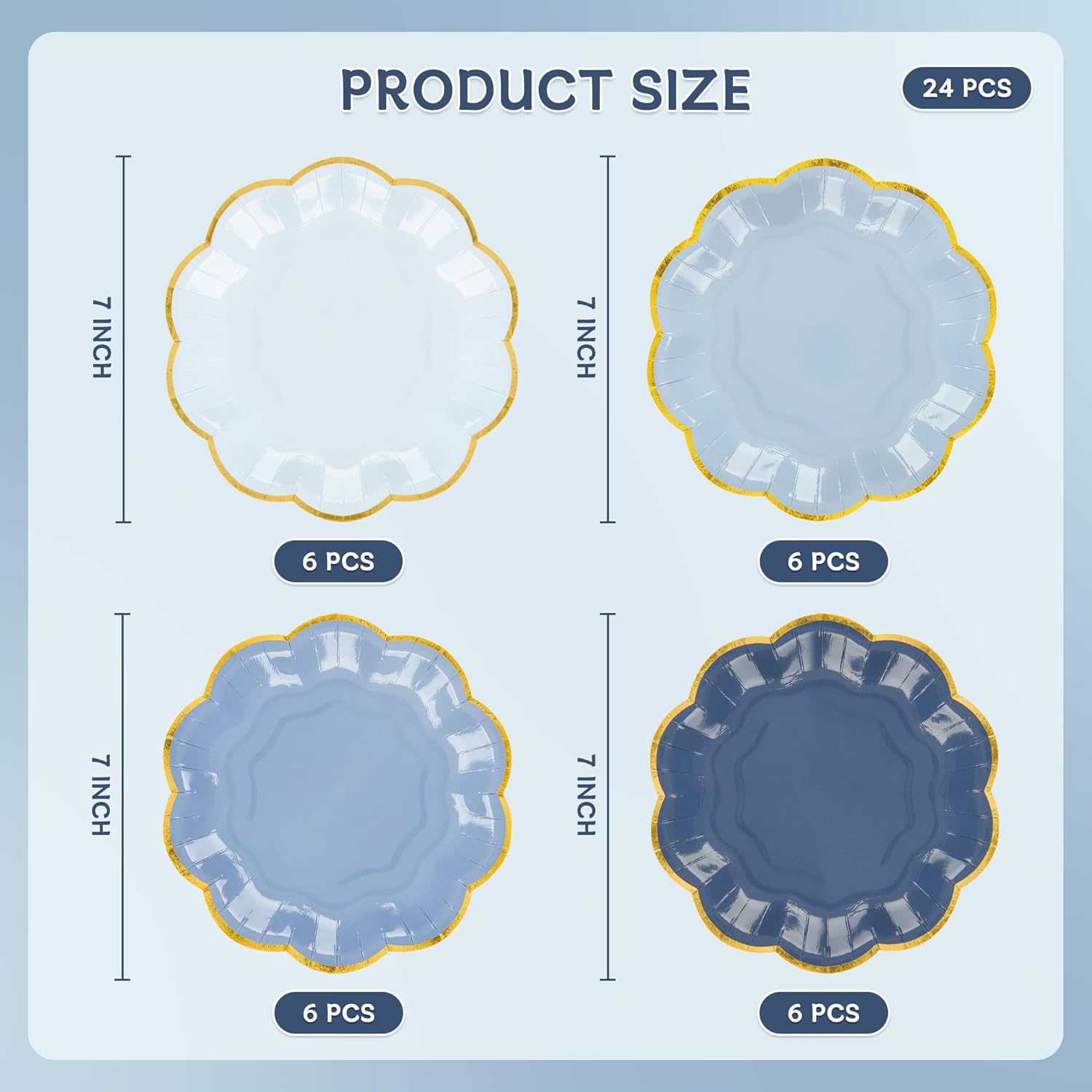- Gradient Color: Colored with 4 different shades of dusty blue and designed with a gold foil scalloped edge, these round paper plates add a fresh and elegant touch to any occasion.