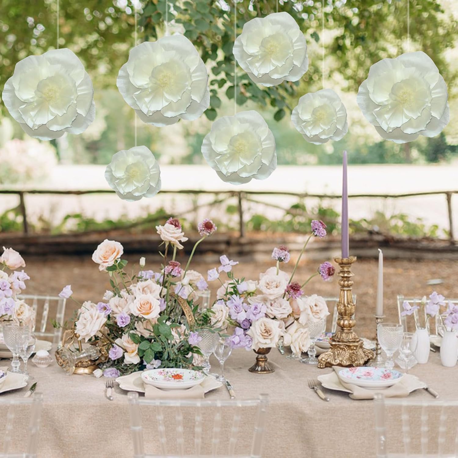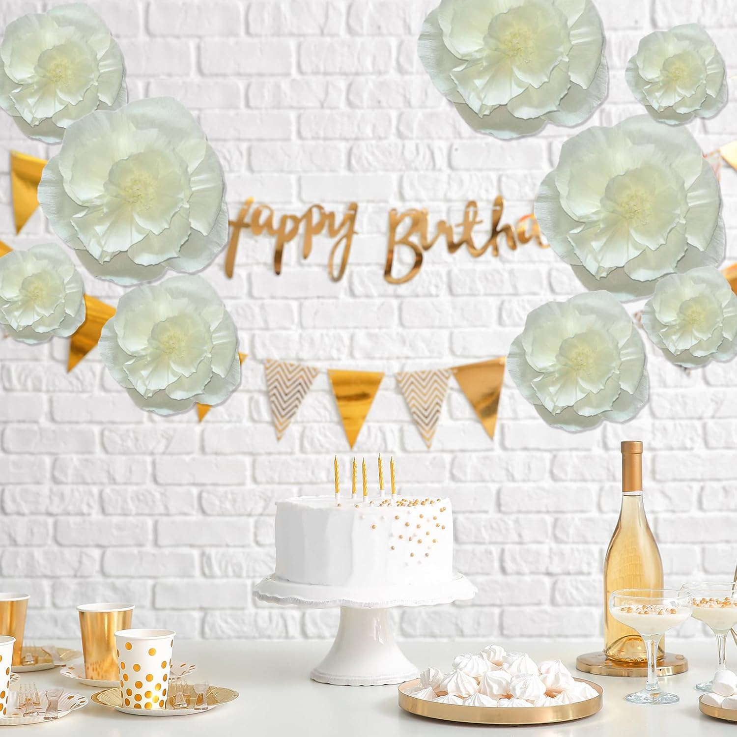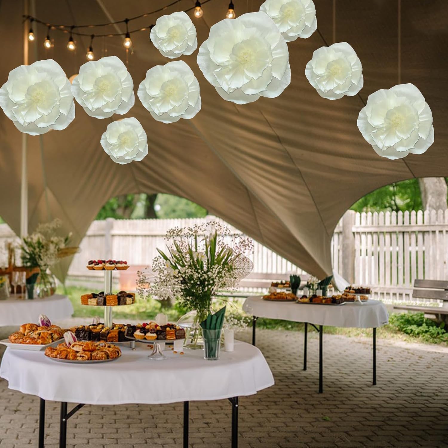 - Crepe Paper Flowers: Total 9pcs beige paper flowers in 3 sizes 12”, 10”, 8”.
