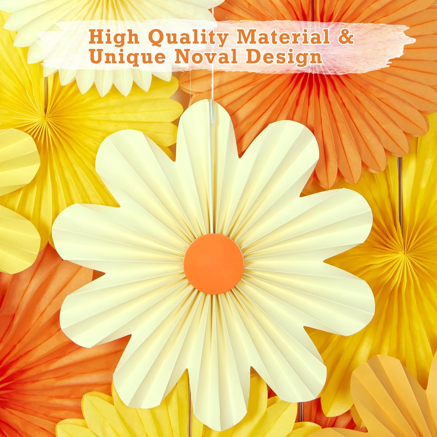 - Perfect for Event Backdrops & Wall Decor:Create a memorable backdrop with ease! Our daisy paper fans are designed to enhance your party's theme and provide an eye-catching focal point on any wall. Whether it's for a birthday party, baby shower, or spring event, these paper flowers will elevate your decor, making your celebrations extra special. Theyโre also perfect for use as wall decorations, transforming any room into a celebration-ready space.