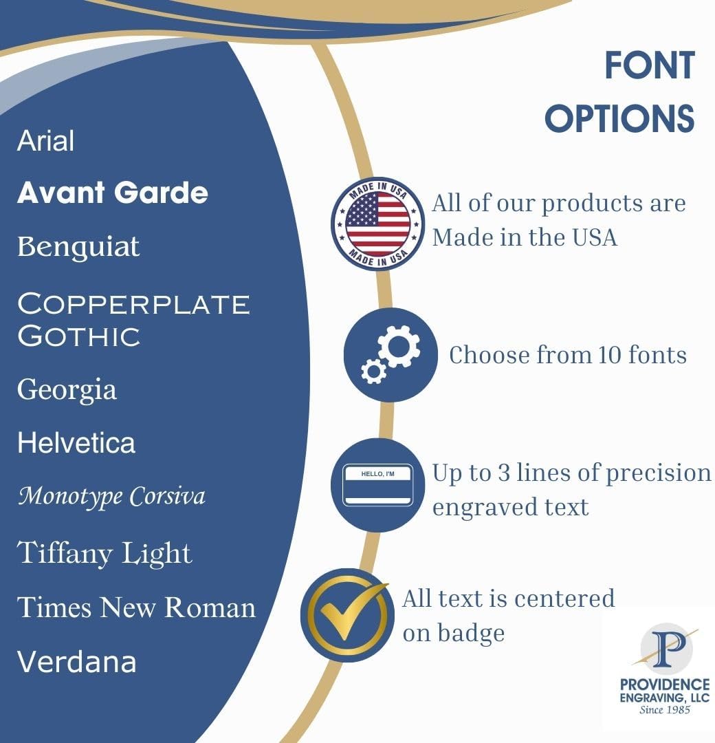 - Each personalized name tag is manufactured in the United States using high-quality, acrylic-based plastic and carefully engraved using a precision CO2 laser