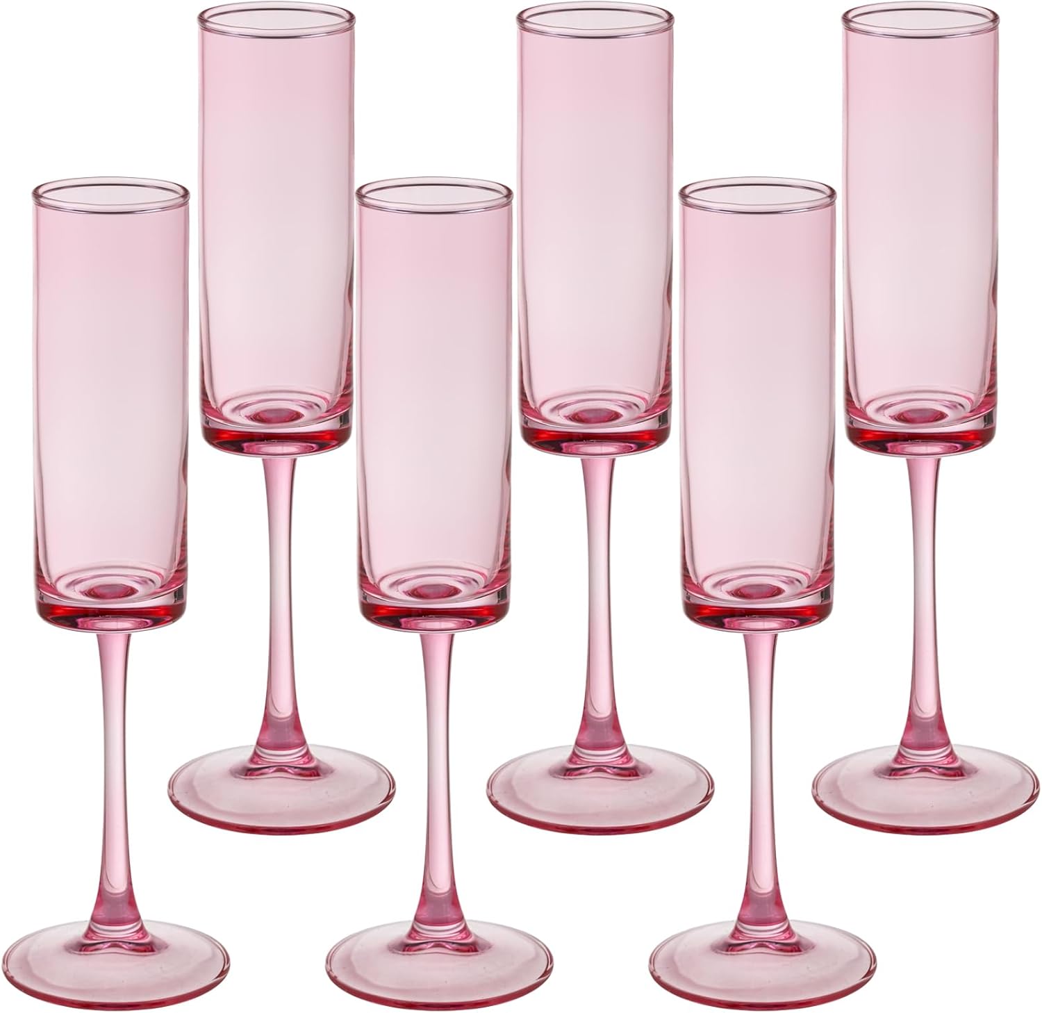 6 Pieces Pink Champagne Flutes 6 OZ Straight Sided Wine Glasses Champagne Long Stem Drinking Colored Glasses,Set of 6 Hand Blown Champagne Flutes Goblets for Wedding Cocktail Cups,Cava, Prosecco