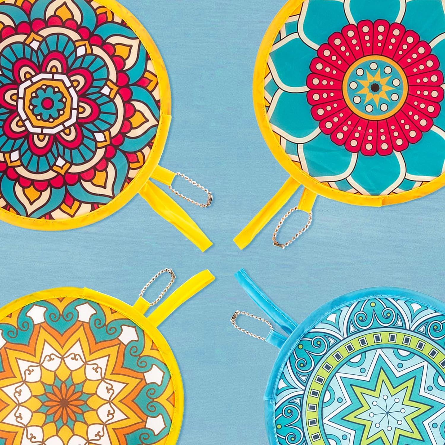 4pcs Mandala Round Foldable Hand Fan Japanese Foldable Fan Style Handheld Compact Cooling Fans,Round Folding Fan for Outdoor Games,Xmas Decoration,Festival,Party Favors,Travel,Events