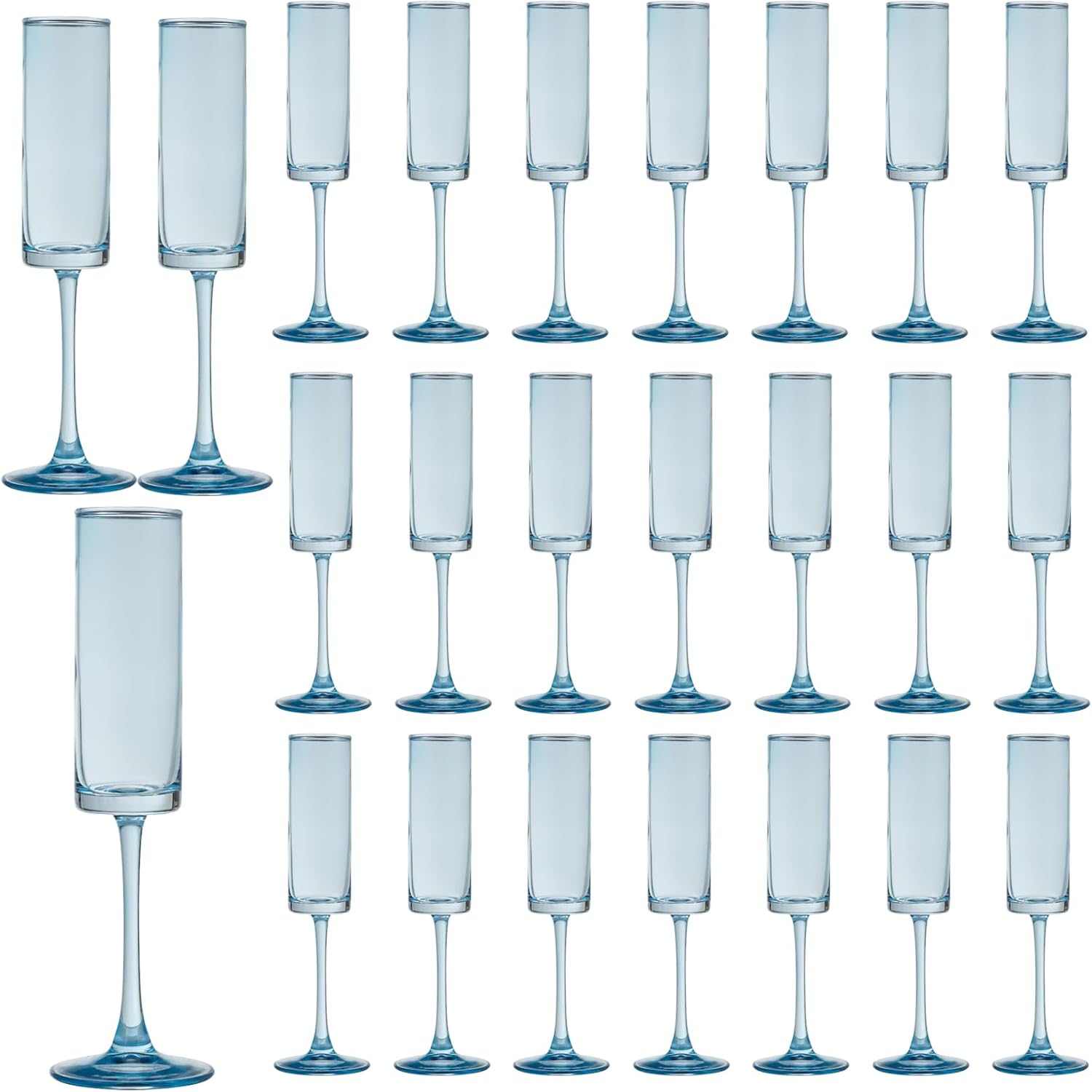 24 Pieces Blue Champagne Flutes 6 OZ Straight Sided Wine Glasses Champagne Long Stem Drinking Colored Glasses,Set of 24 Hand Blown Champagne Flutes Goblets for Wedding Cocktail Cups,Cava, Prosecco