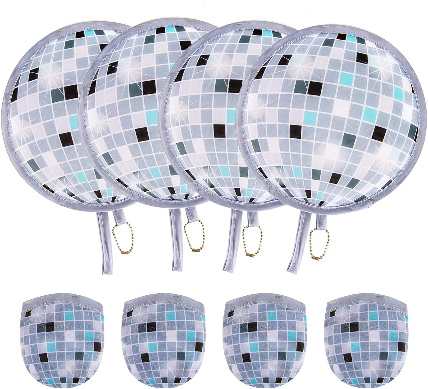4pcs Disco Round Foldable Hand Fan Japanese Foldable Fan Style Handheld Compact Cooling Fans,Round Folding Fan for Outdoor Games,Xmas Decoration,Festival,Party Favors,Travel,Events