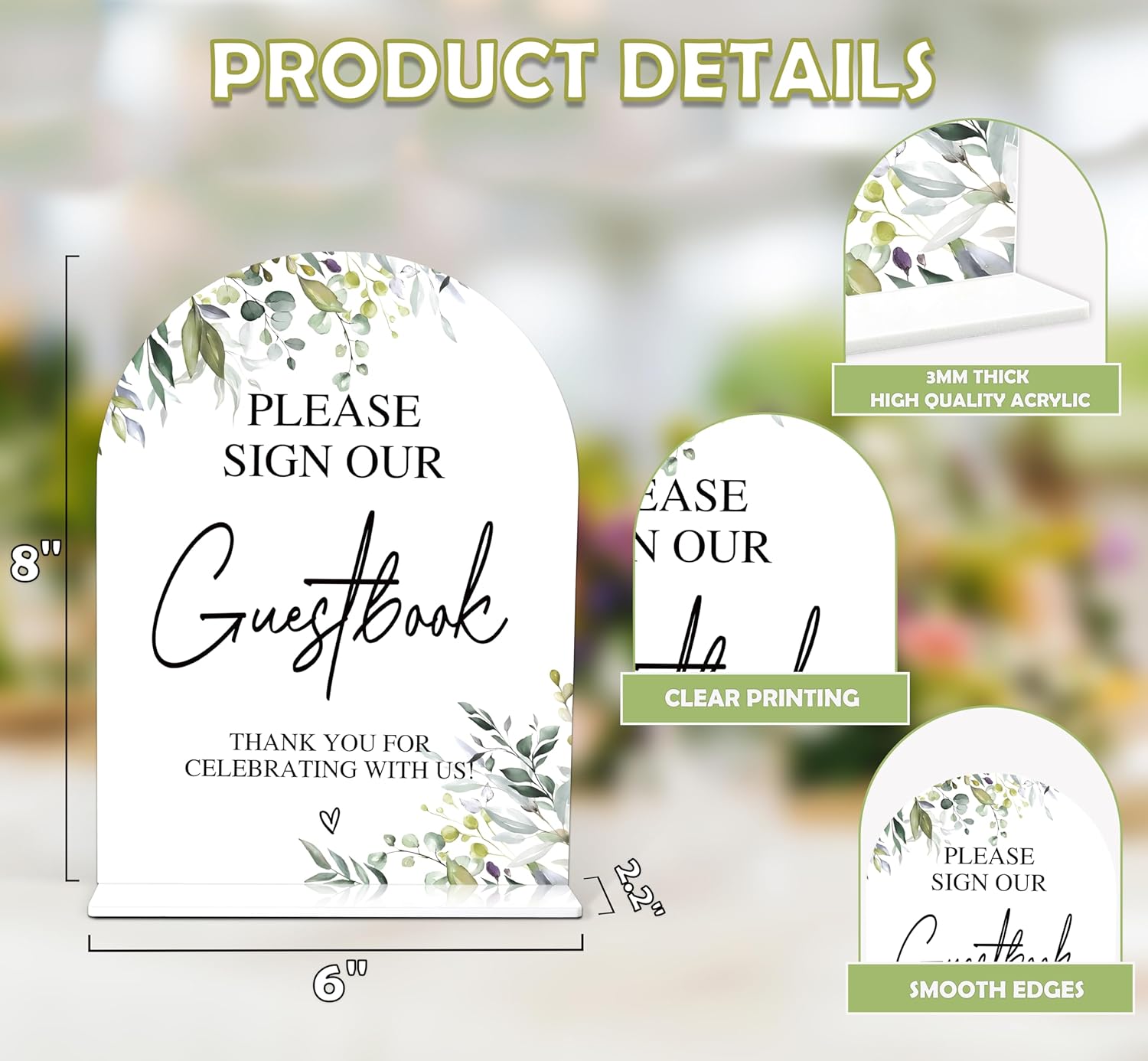 Greenery Please Sign Our Guestbook Sign, 6 x 8 Inch White Arch Acrylic Wedding Sign with Holder, Wedding Sign for Ceremony and Reception, Wedding Decoration, Wedding Supplies - LY02