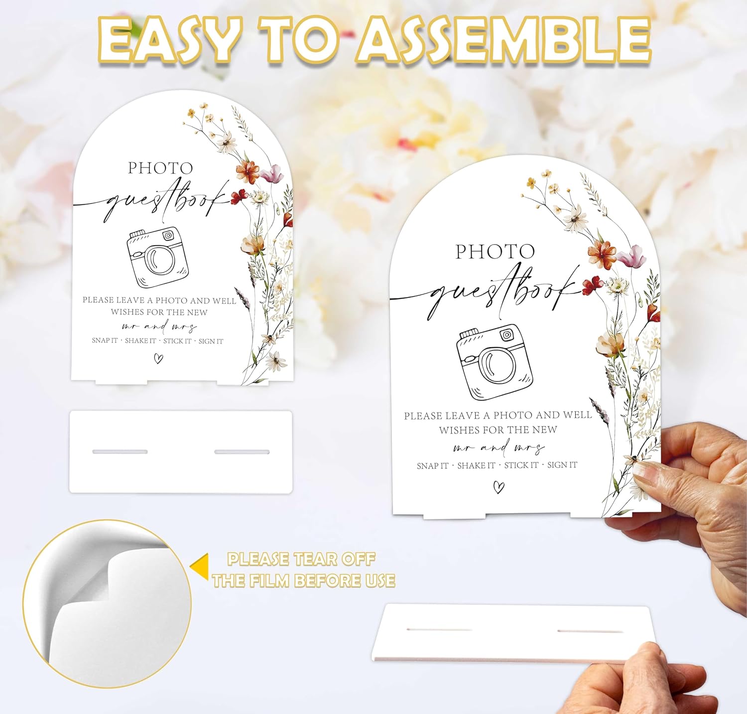 Boho Floral Photo Guestbook Sign, 6 x 8 Inch White Arch Acrylic Wedding Sign with Holder, Wedding Sign for Ceremony and Reception, Wedding Decoration, Wedding Supplies - BX06