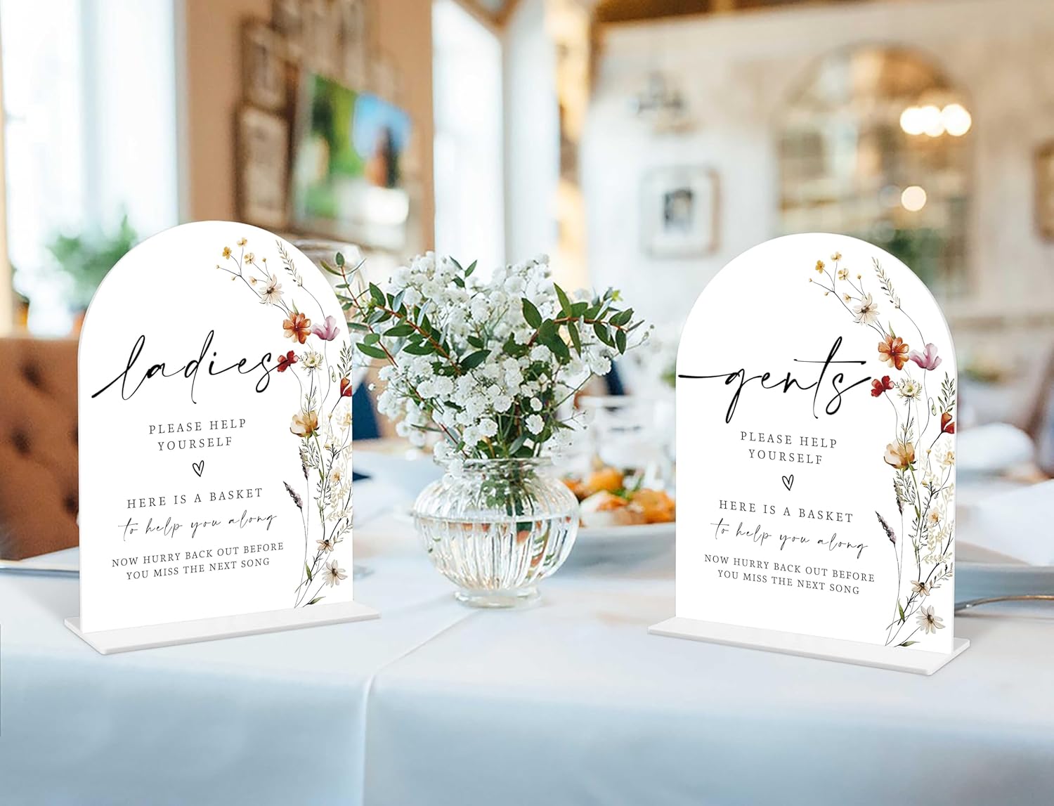 2 Pcs Boho Floral Wedding Bathroom Ladies & Gents Signs, 6 x 8 Inch White Arch Acrylic Wedding Sign with Holder, Wedding Sign for Ceremony and Reception, Wedding Decoration, Wedding Supplies - BX32