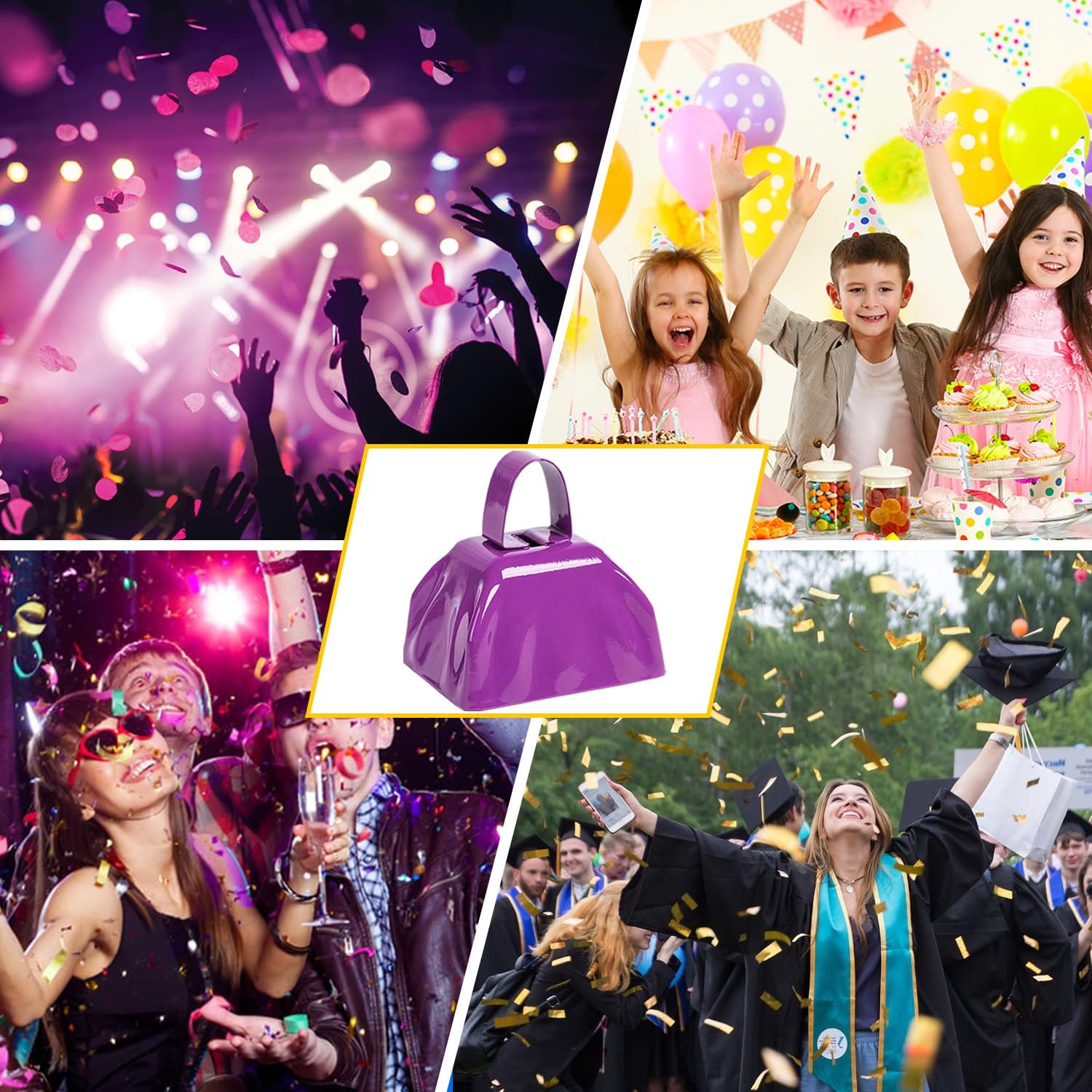 • MULTIFUNCTIONAL COWBELLS: These versatile cowbells are perfect for creating festive noise at sporting events, holidays (Christmas, Halloween), weddings, parties, and more! They also serve as a handy signaling device for seniors or people with disabilities who need to attract attention.