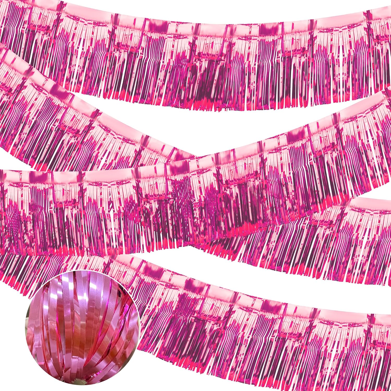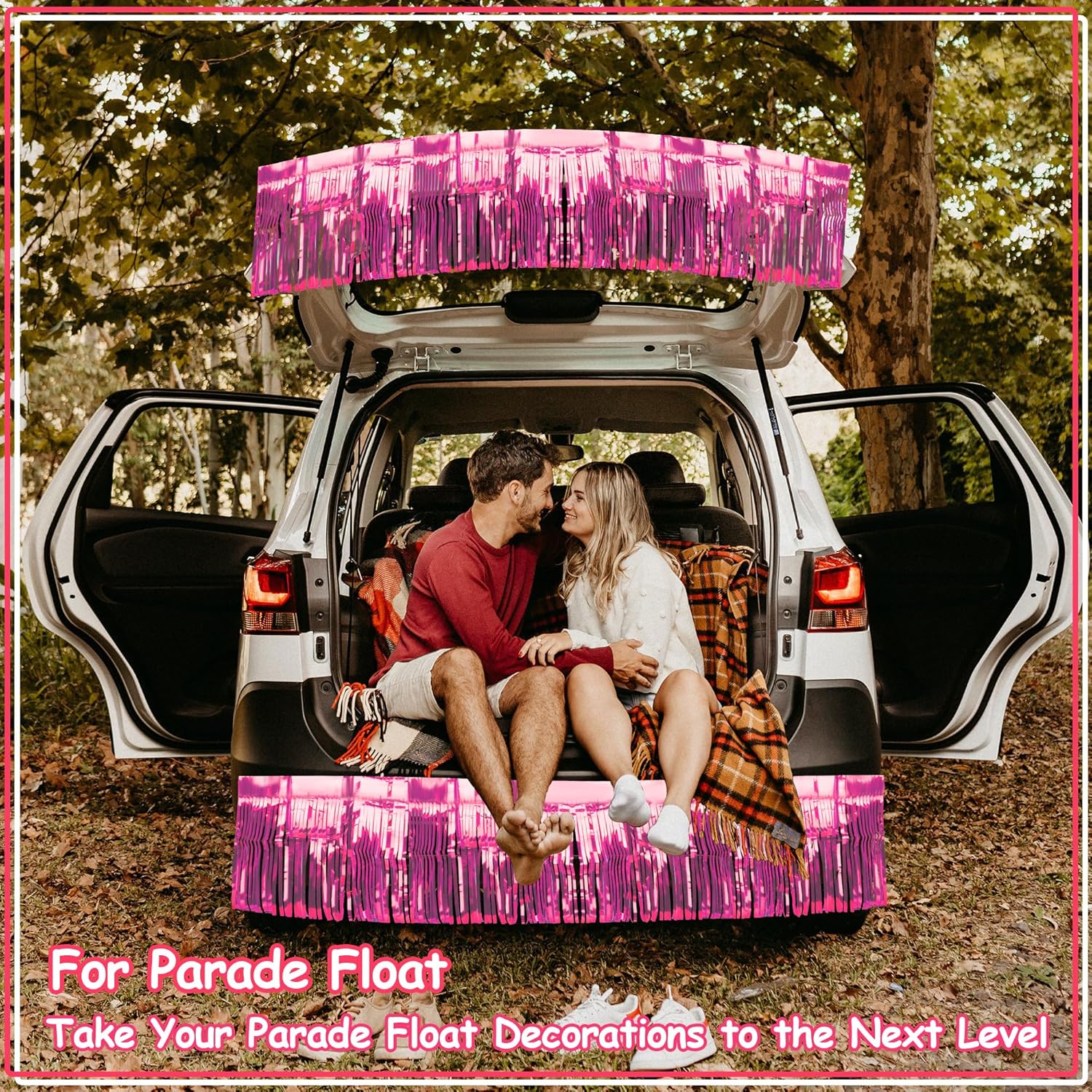 4 Pack Float Fringe Curtains, Metallic Foil Fringe Garland Shiny Tassel Foil Float Parade Float Decorations for Trailer Car Graduation Homecoming Valentine Outdoor Indoor Party (Pink)