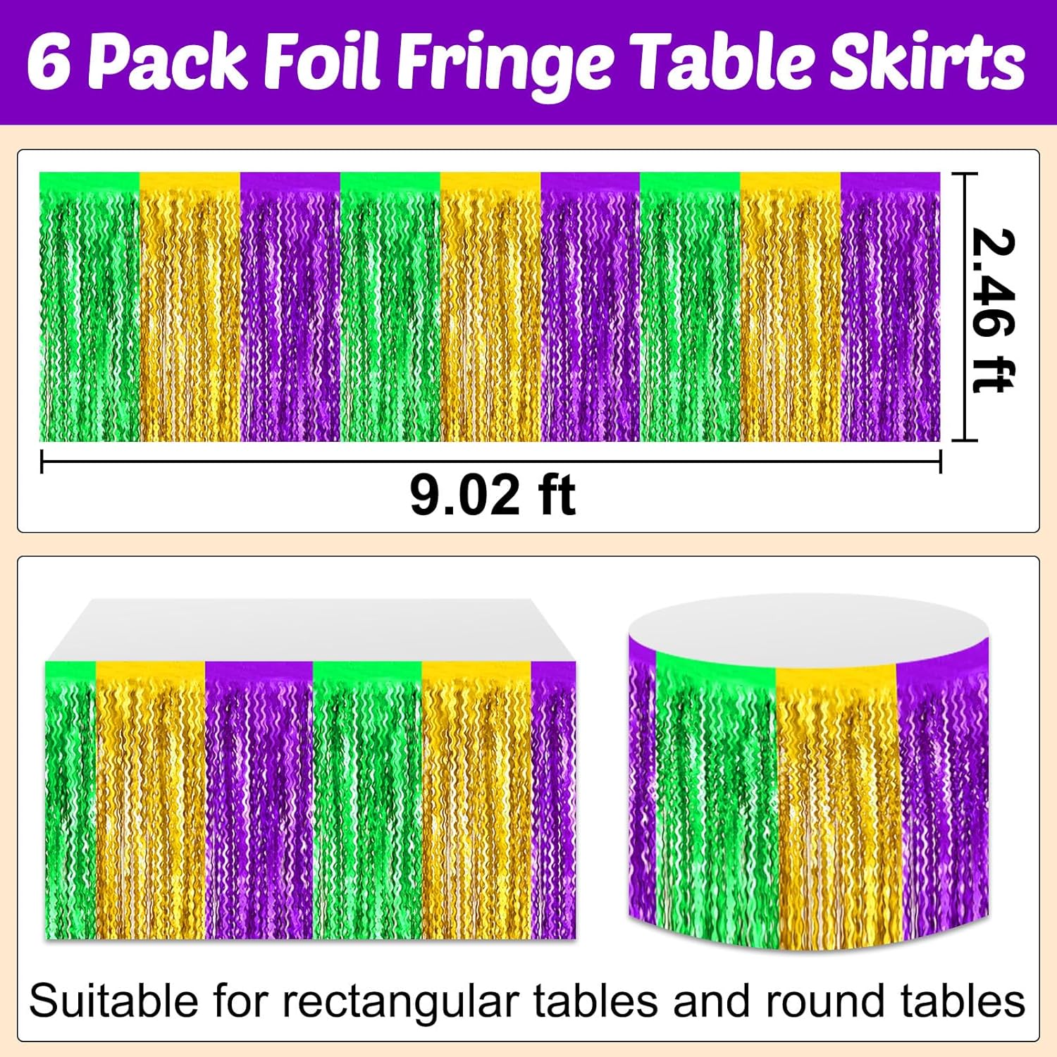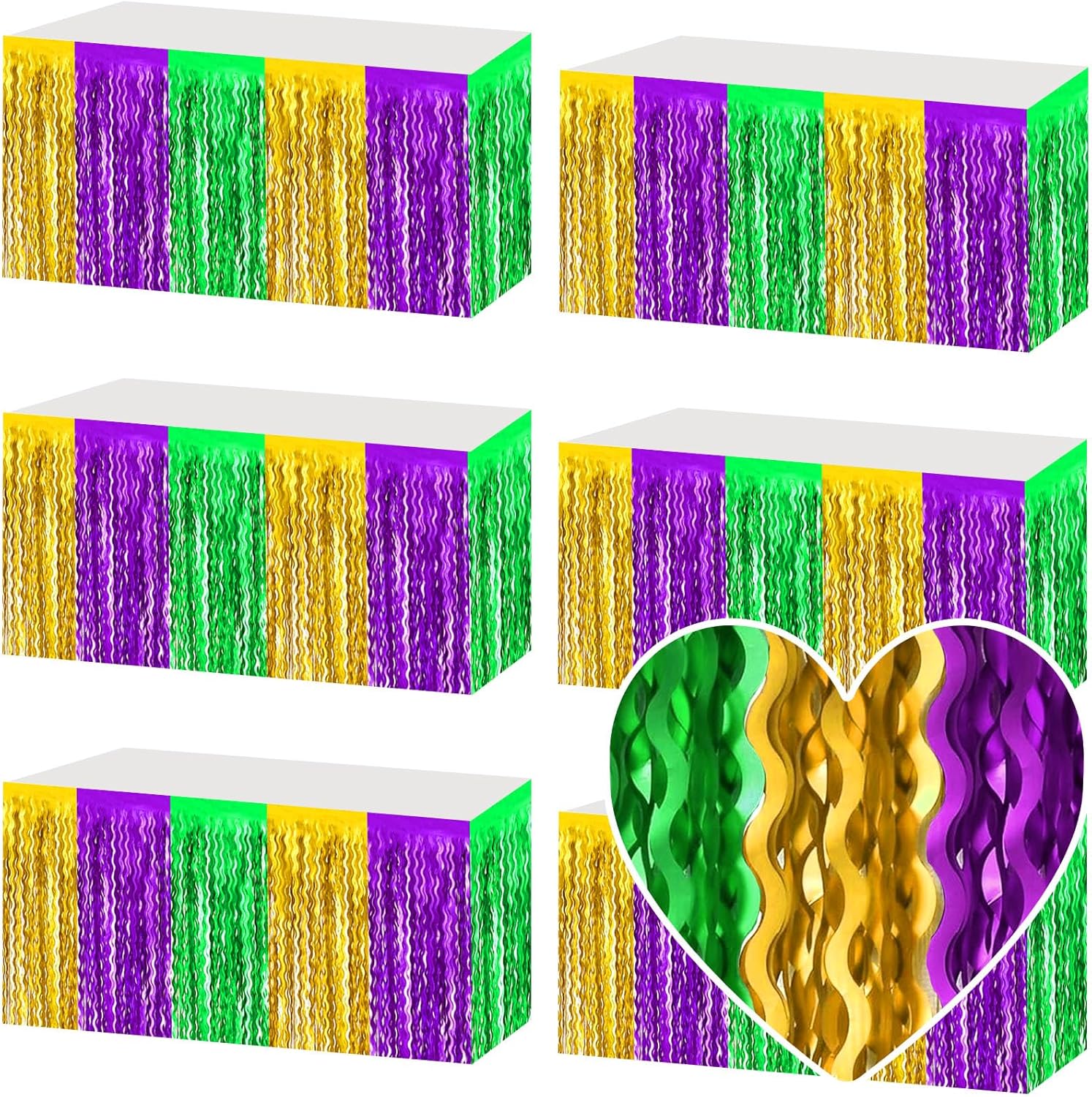 6 Pack 29x108 Inch Gold Green Purple Wave Foil Fringe Table Skirts Metallic Banner for Tinsel Streamer Garland Backdrop for Parade Floats Wedding, Mother's Day, Birthday Mardi Gras Party Decorations