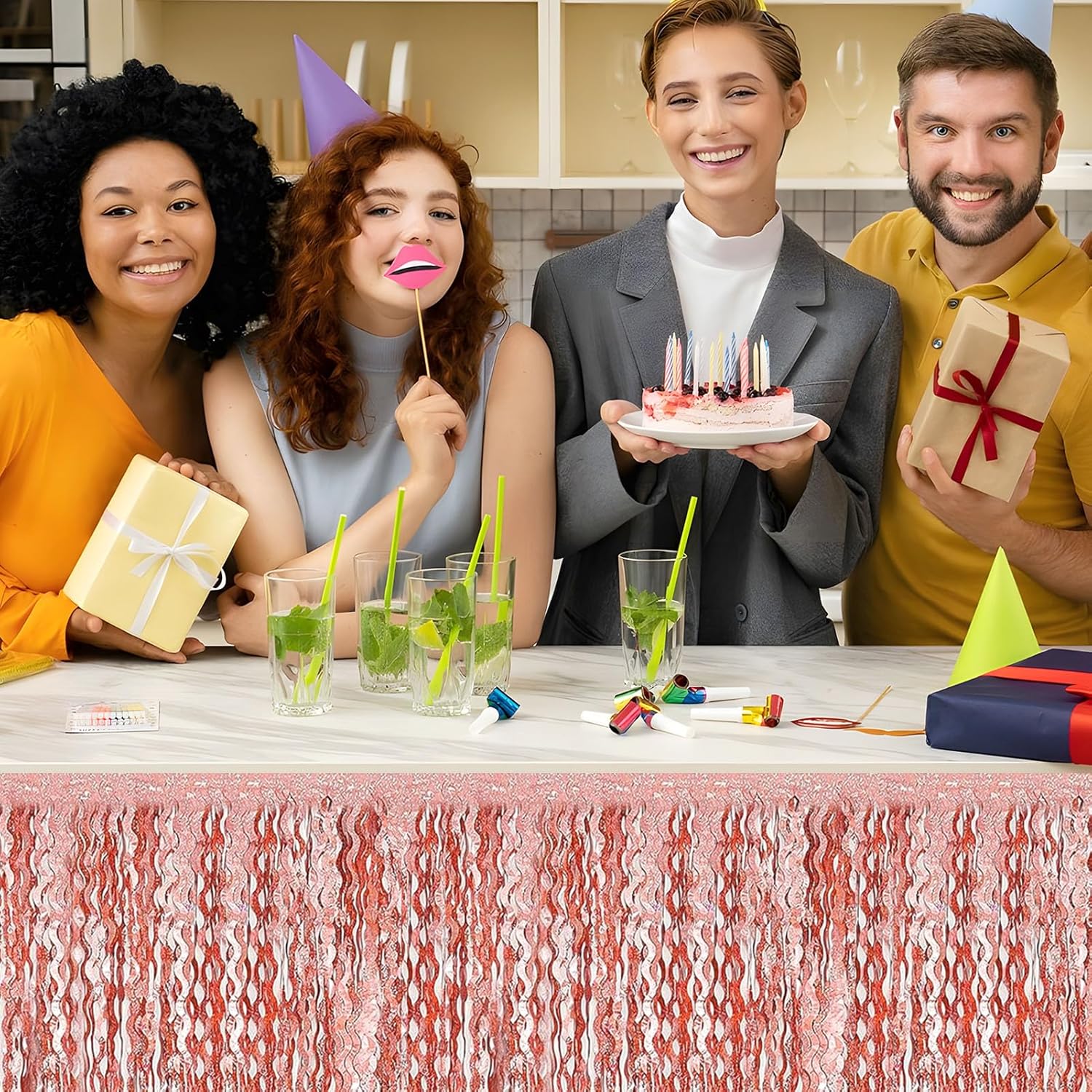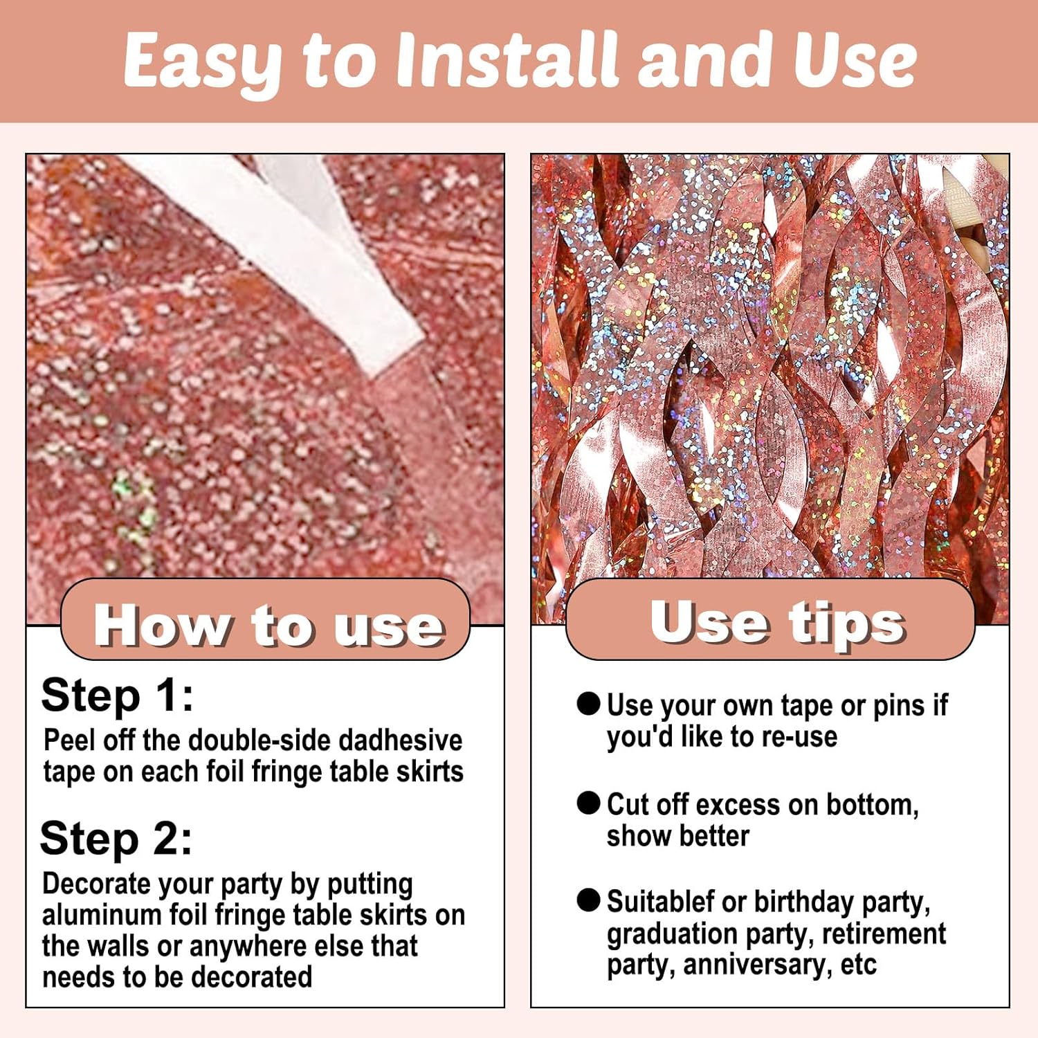 6 Pack 29x108 Inch Rose Gold Wave Foil Fringe Table Skirts Metallic Banner for Tinsel Streamer Garland Backdrop for Parade Floats Mother's, Graduate, Mardi Gras, Birthday, Wedding Party Decorations
