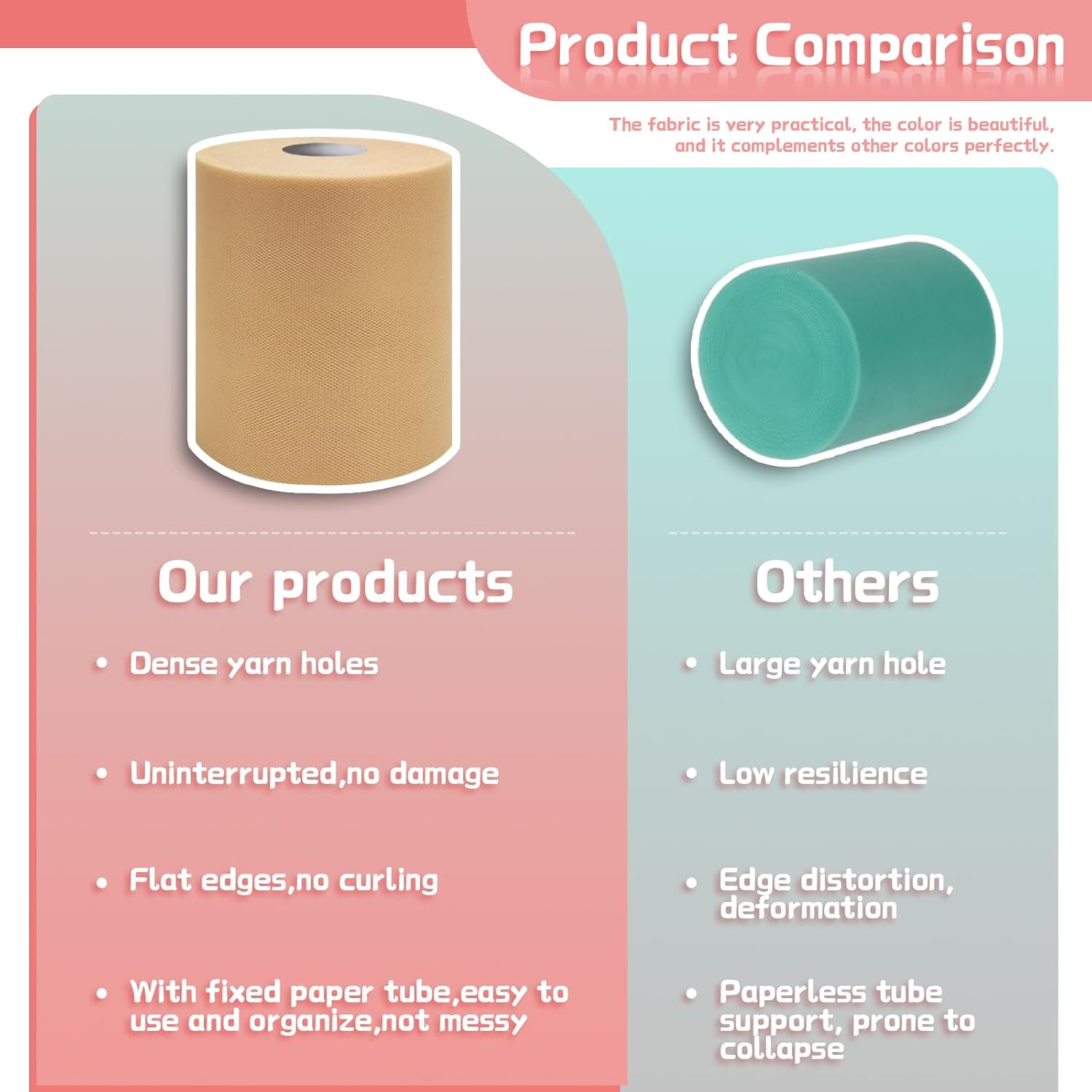 - Ideal size and length: The size of each tulle fabric roll is 6 inches wide and 200 yards (600 feet) long. The continuous design makes it more durable and can meet your different cutting needs