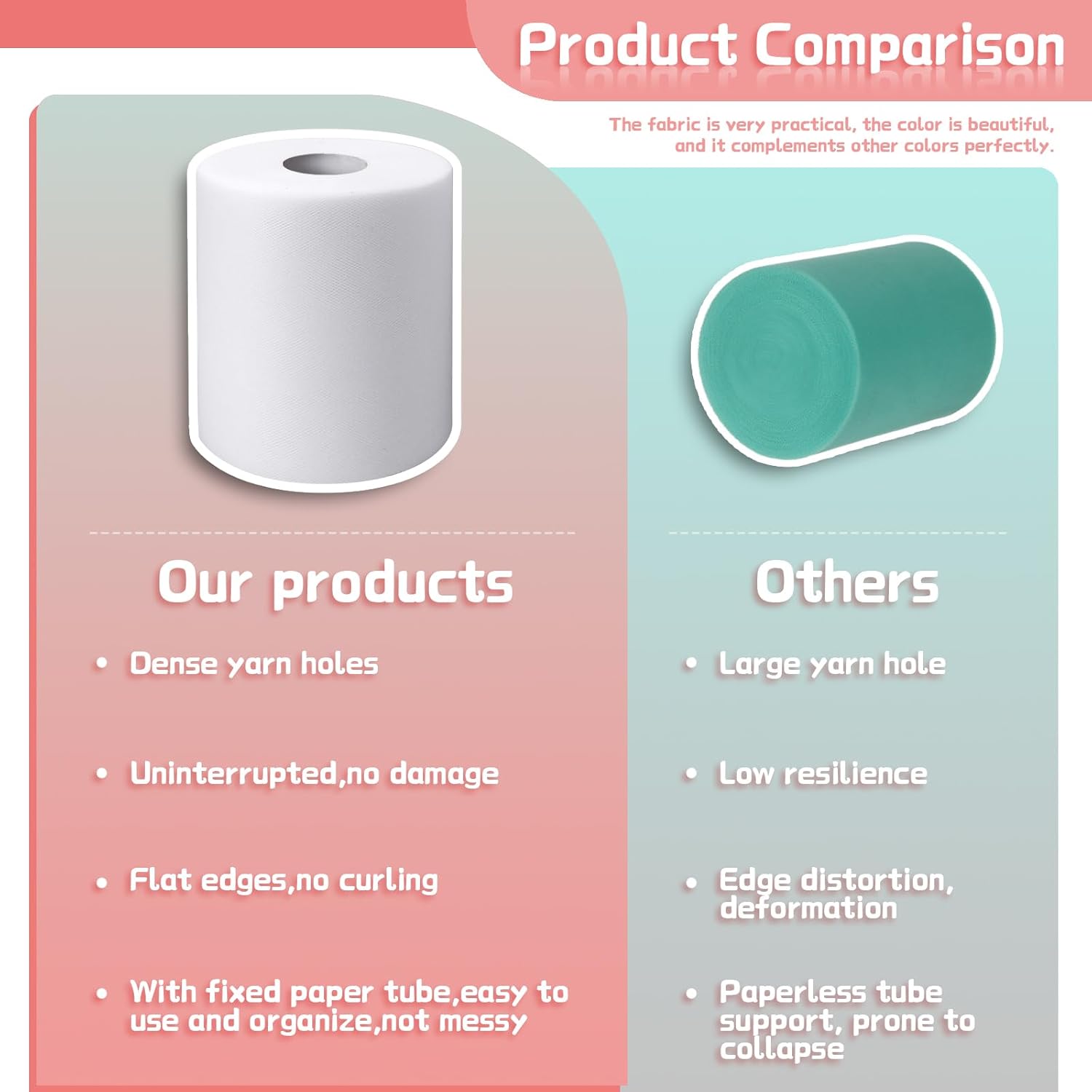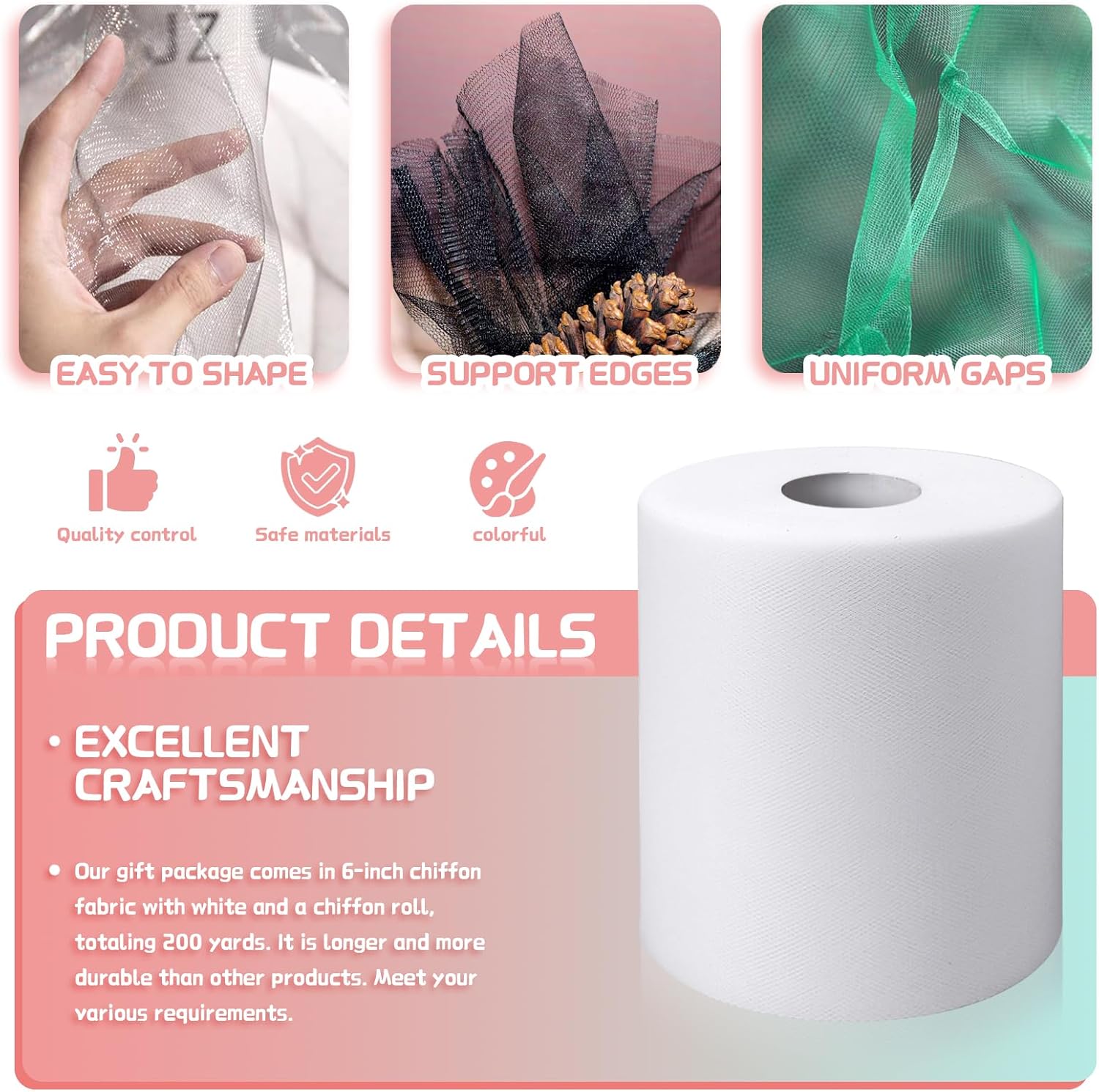 - Ideal size and length: The size of each tulle fabric roll is 6 inches wide and 200 yards (600 feet) long. The continuous design makes it more durable and can meet your different cutting needs