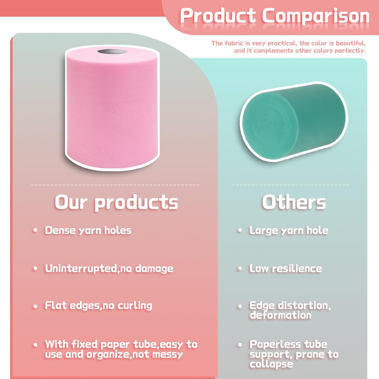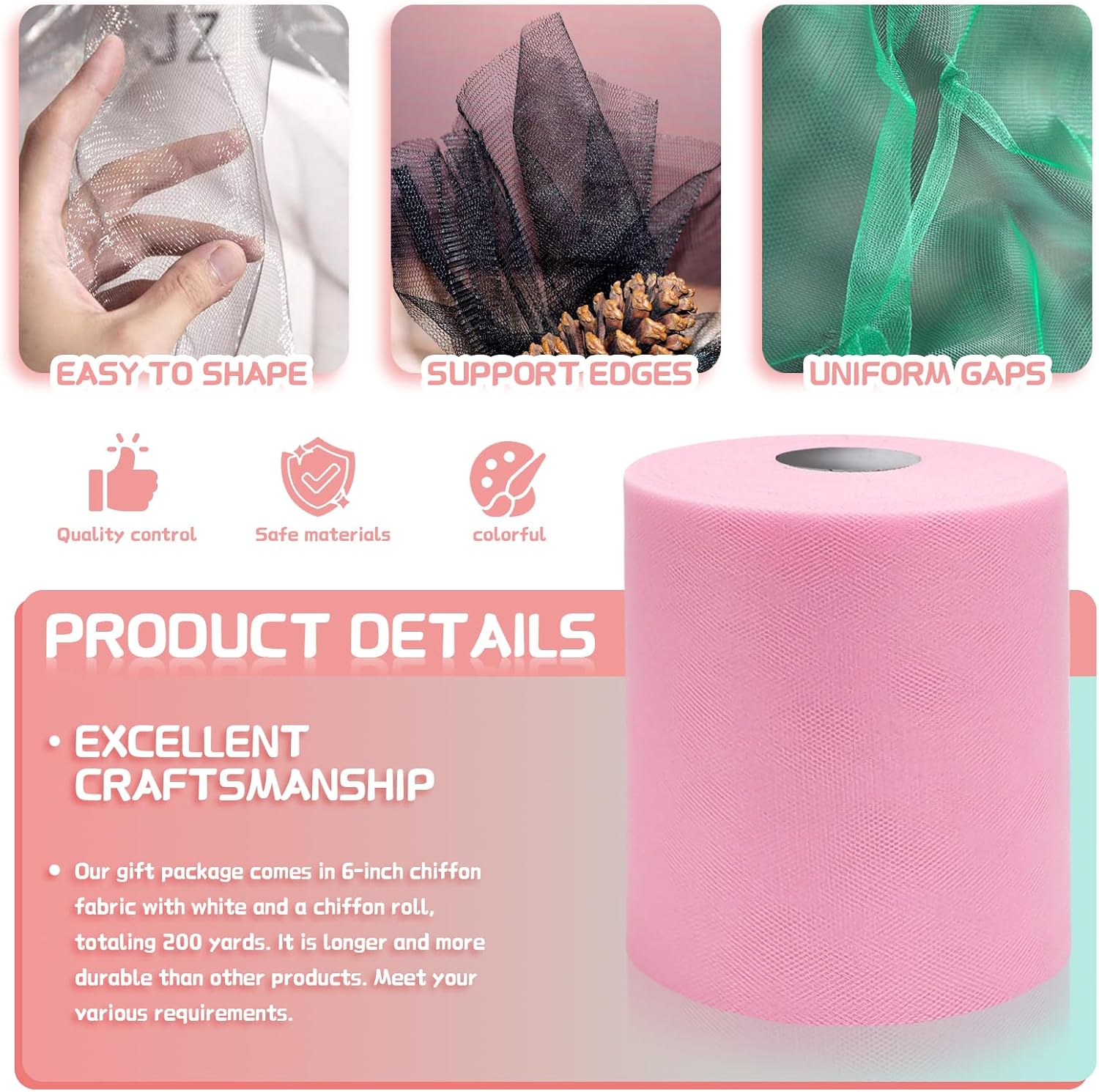 - Ideal size and length: The size of each tulle fabric roll is 6 inches wide and 200 yards (600 feet) long. The continuous design makes it more durable and can meet your different cutting needs