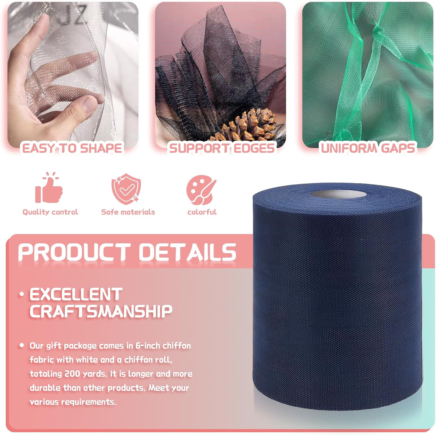 - Ideal size and length: The size of each tulle fabric roll is 6 inches wide and 200 yards (600 feet) long. The continuous design makes it more durable and can meet your different cutting needs