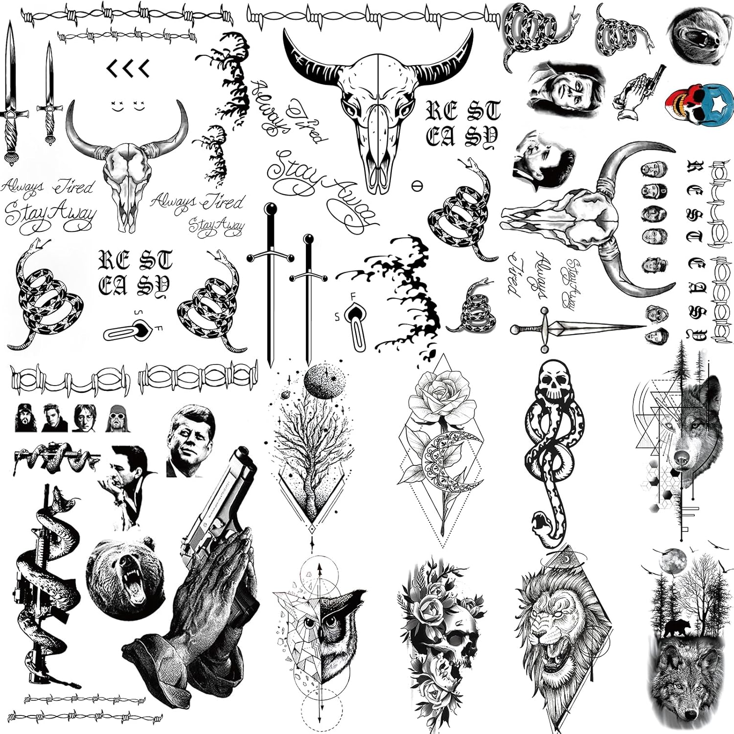 - 【BEAUTY AND REALISTIC】Show off your Halloween fake tattoos anywhere! Like arms, wrists, fingers, ankle, neck, shoulder, feet, legs! You can stick the tattoo to different parts of your body, they are also great for Halloween party, holiday, festivals, traveling and so on.