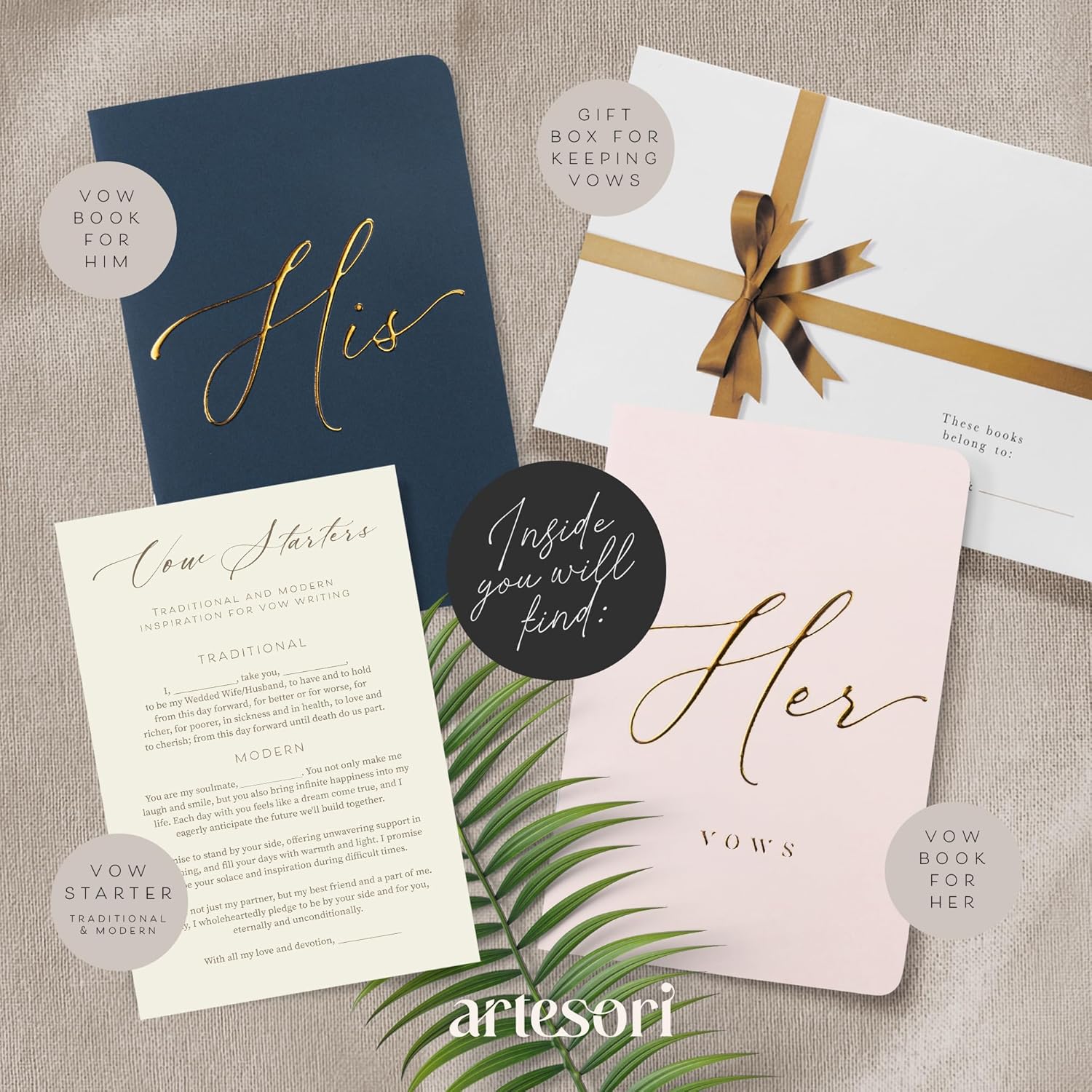 ARTESORI Wedding Vow Book for Her & Him, Soft Touch, Gold Engraving, 28 Lined Pages, Wedding Vow Books His and Hers, Wedding Essentials, Wedding Registry Gifts, His and Hers Gifts [Blush & Navy]