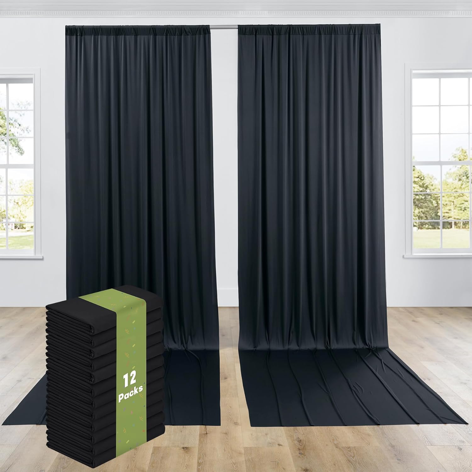 - 15FT Extra Long Backdrop Drapes: 12 Panels 5ftx15ft Black Backdrop Curtains for Parties. Totally 60FT(Width) x 15FT(Height). cortinas para fiestas decoracion.