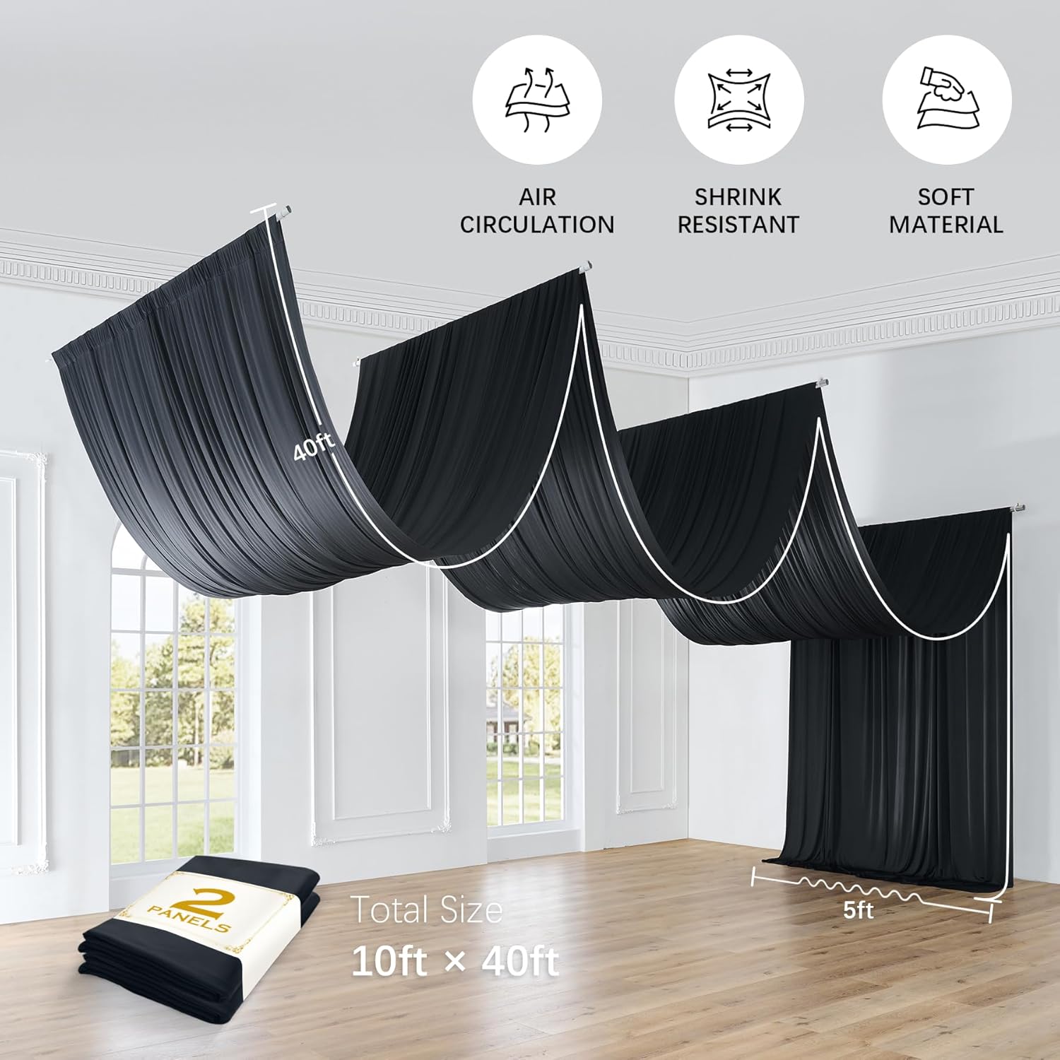 - 40ft Extra Long Ceiling Drapes: 2 Panels 5ftx40ft Black Backdrop Curtains for Parties. Totally 10FT(Width) x 40FT(Height). cortinas para fiestas decoracion.