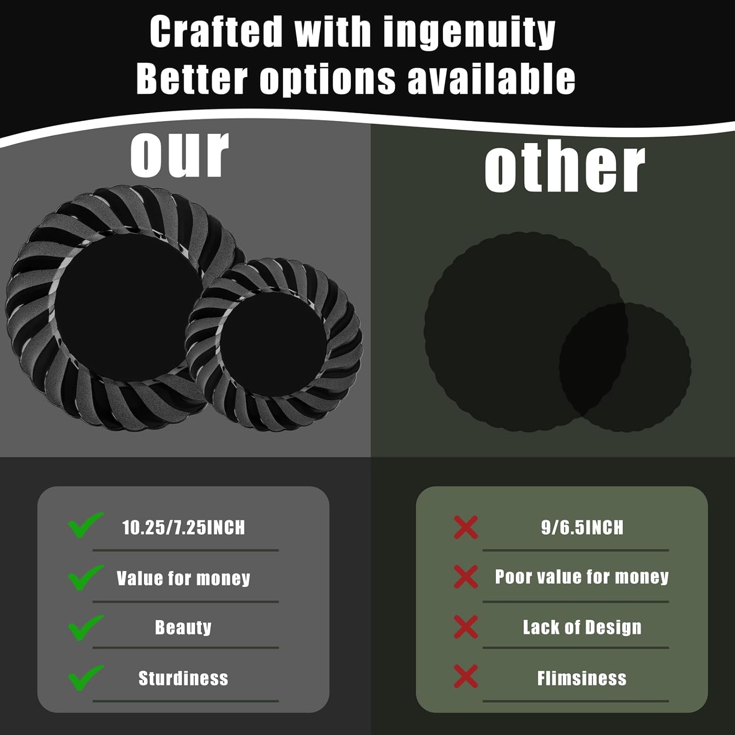 U-QE 60 Pcs Black Plastic Plates for Party – Scalloped Plastic Plates Heavy Duty – Include 30 10.25" Dinner & 30 7.25" Dessert Plate - Perfect for Halloween, Weddings & Birthdays