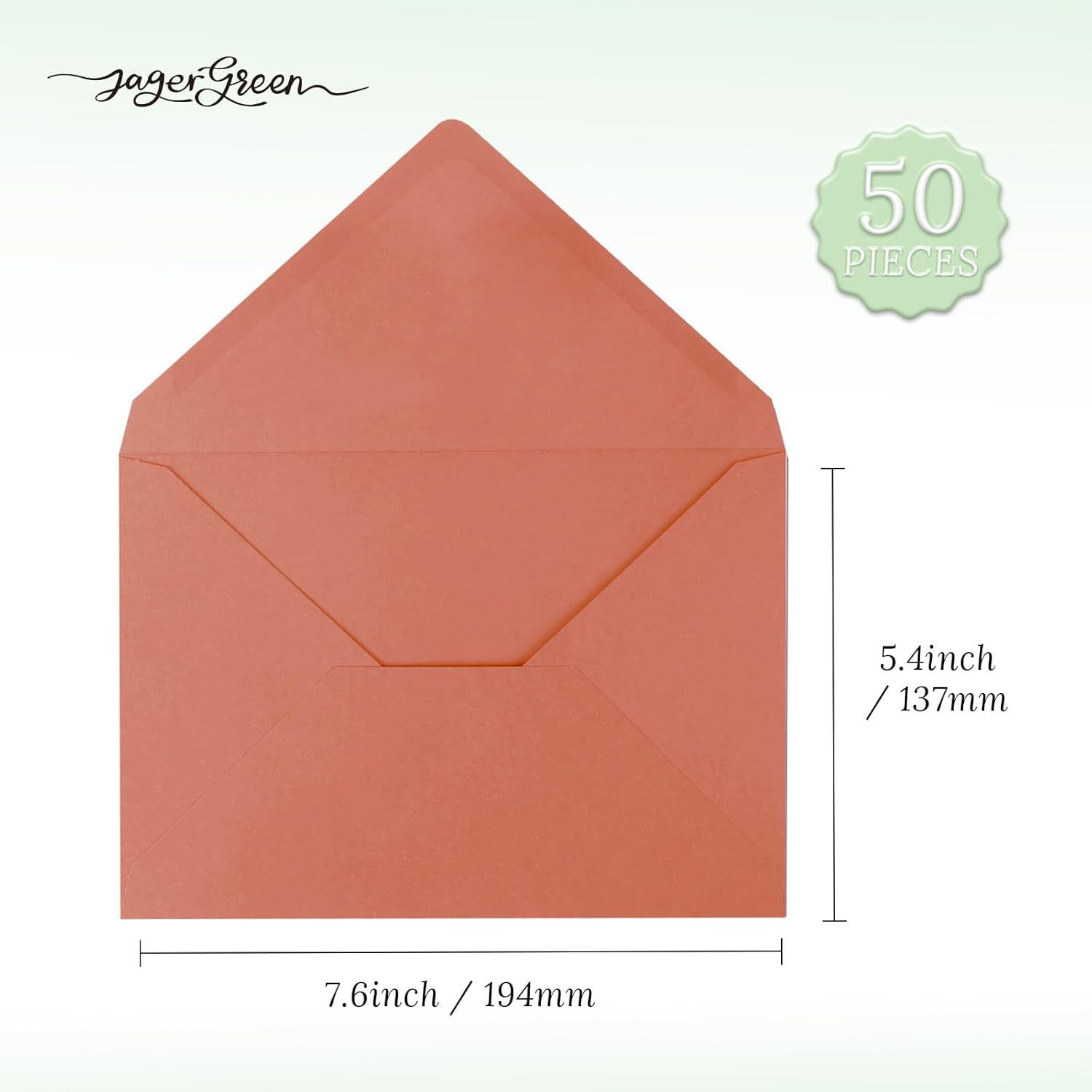 - Premium Material: 50 Pack A7 size (5.4" x 7.6"/13.7 cm x 19.4 cm) envelope is made of high-quality colored 100 lb. TEXT / 40 lb. BOND/ 150 GSM paper stock, you cannot see right through the envelopes, your privacy will be well protected. Large enough to comfortably fit 5" x 7" items, ensuring durability and a professional look.