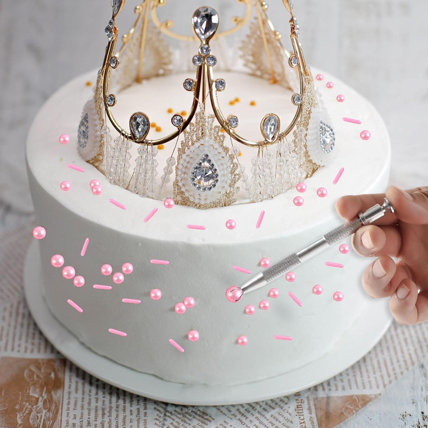 - 【Excellent Material】: Pink sprinkles for cake decorating are made of food-grade safe ingredients, you can eat them with confidence. It can be eaten by men, women, old and young. The 4-claw pick up tool is made of stainless steel material, durable and retractable, it allows you to clamp and place pearl sugar smoothly.