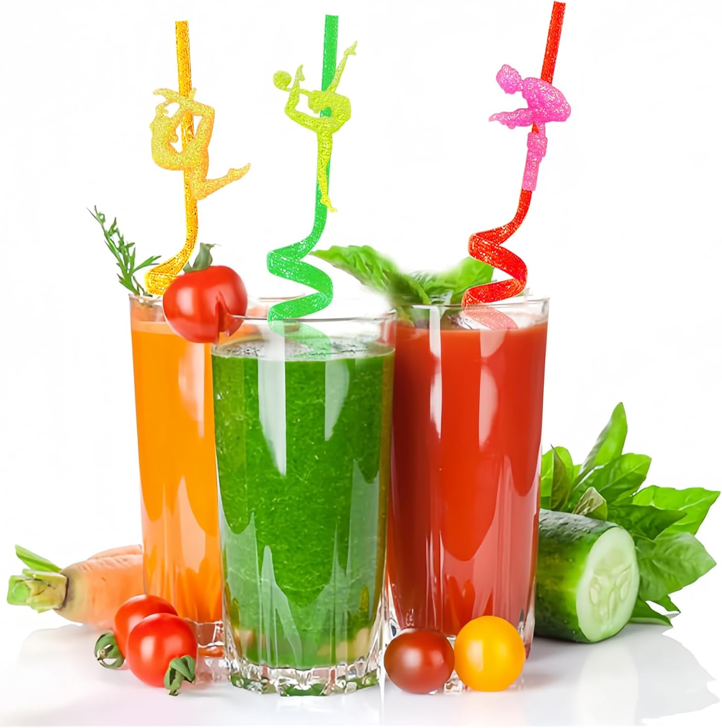 - Diy Party Toys - 8 different colors glitter of straws and 8 Gymnastics party glitter decorations, all Gymnastics Disco patterns can be adjusted as needed, no need glue or any tools, just slide up and down to adjust the gymnastics movements patterns, enjoy your DIY art! This plastic straw can be used for both cold and hot drinks.