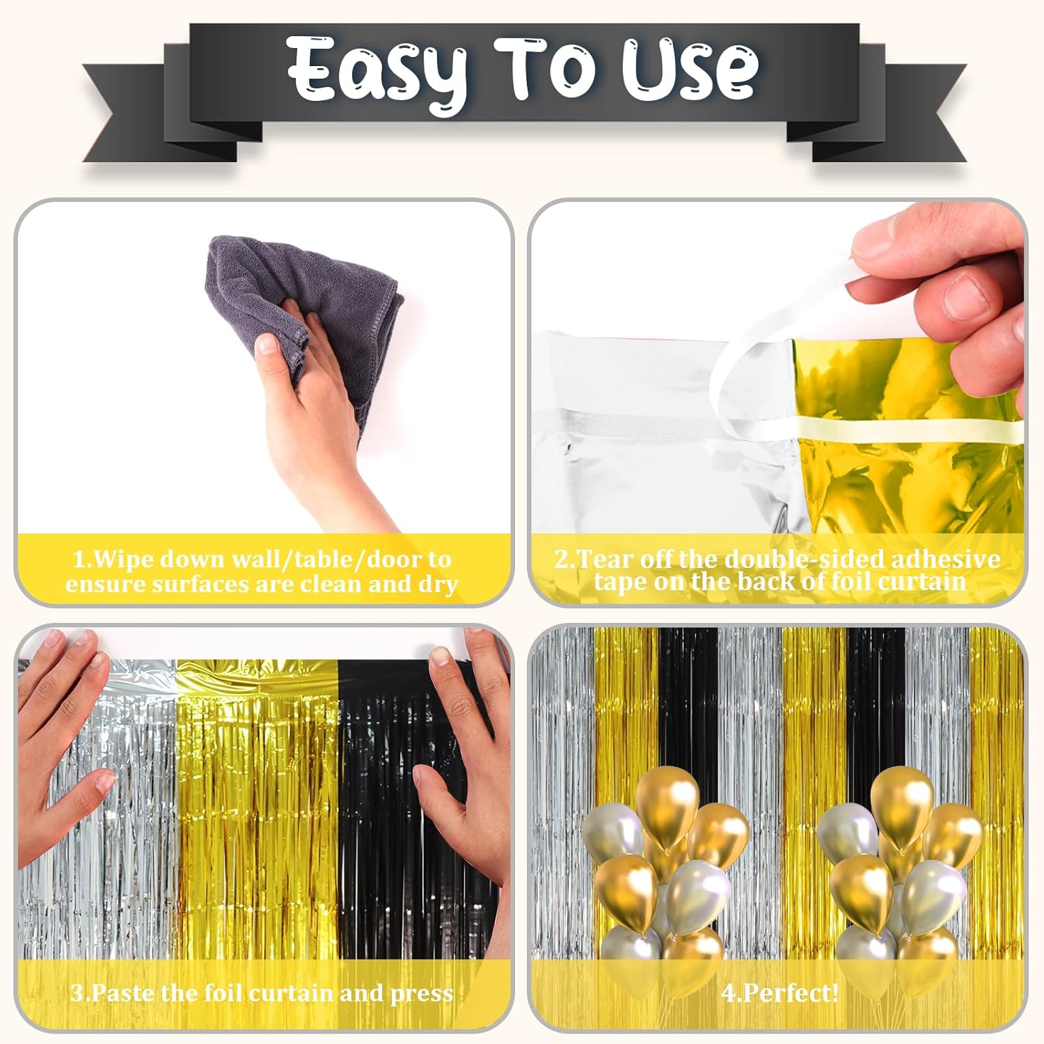 - Widely Applications: This black gold and silver shimmer streamer foil curtain is perfect for New Years