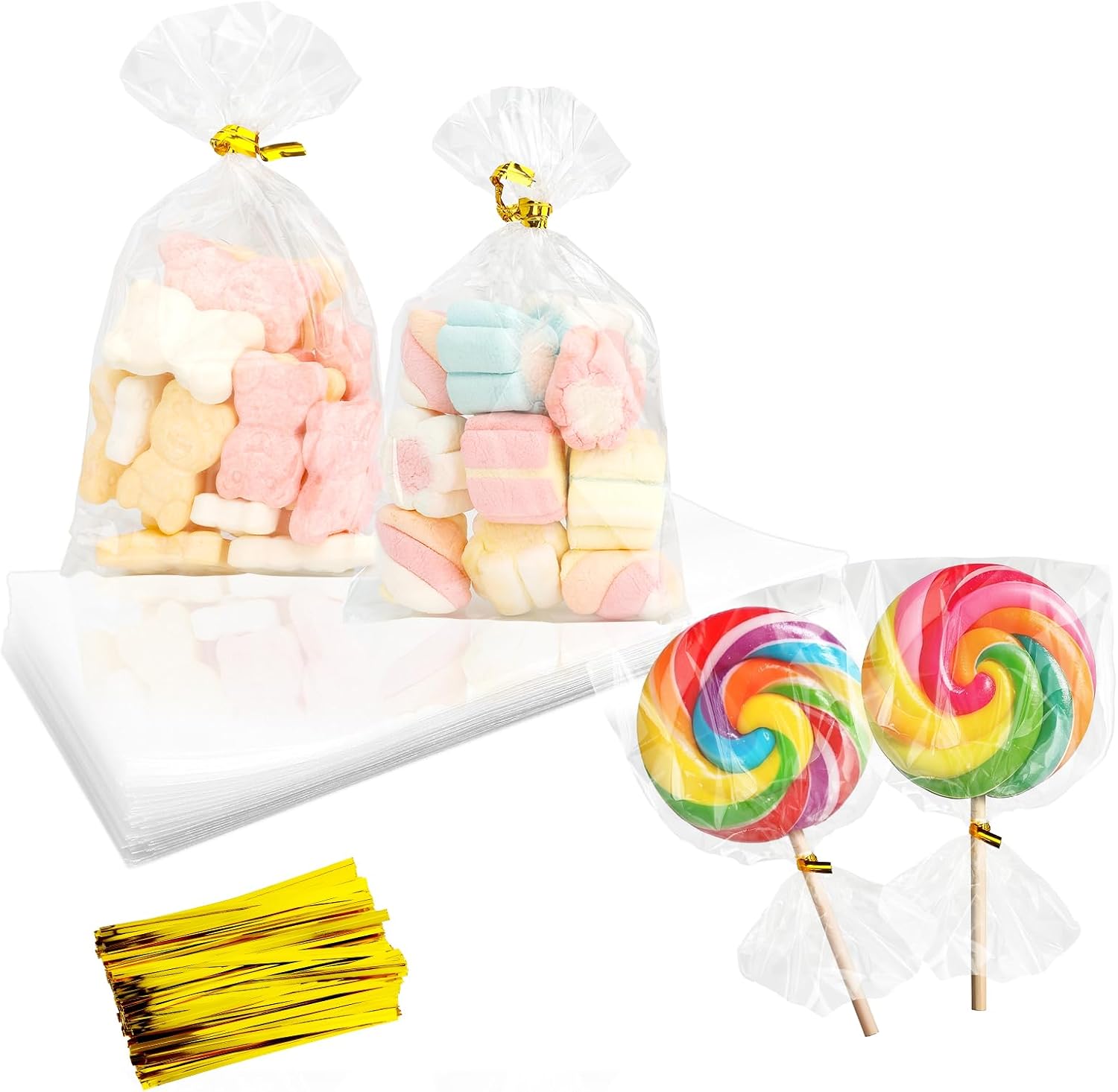 - Enough Quantity: 100 pcs cellophane bags with 100 shiny gold twist ties; easy to seal and open; each treat bags measures 3 inch in width; 5 inch in length; sufficient quantity and suitable size for any kinds of snacks, party favor gift wrapping or retail display