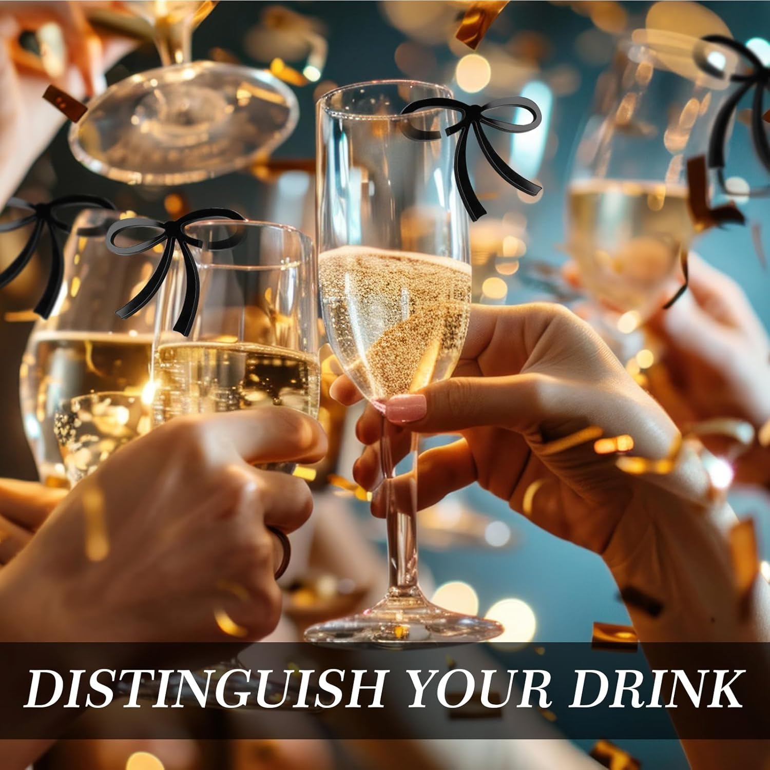 - Stylish Drink Accessory: the black bows drink markers are the suitable accessory to elevate the aesthetic of any party setting; Whether it's the Tying the Knot Bachelorette Party, Coquette Birthday Party or the Girly Ribbon Party, this stylish product seamlessly adds a tasteful touch to your gathering