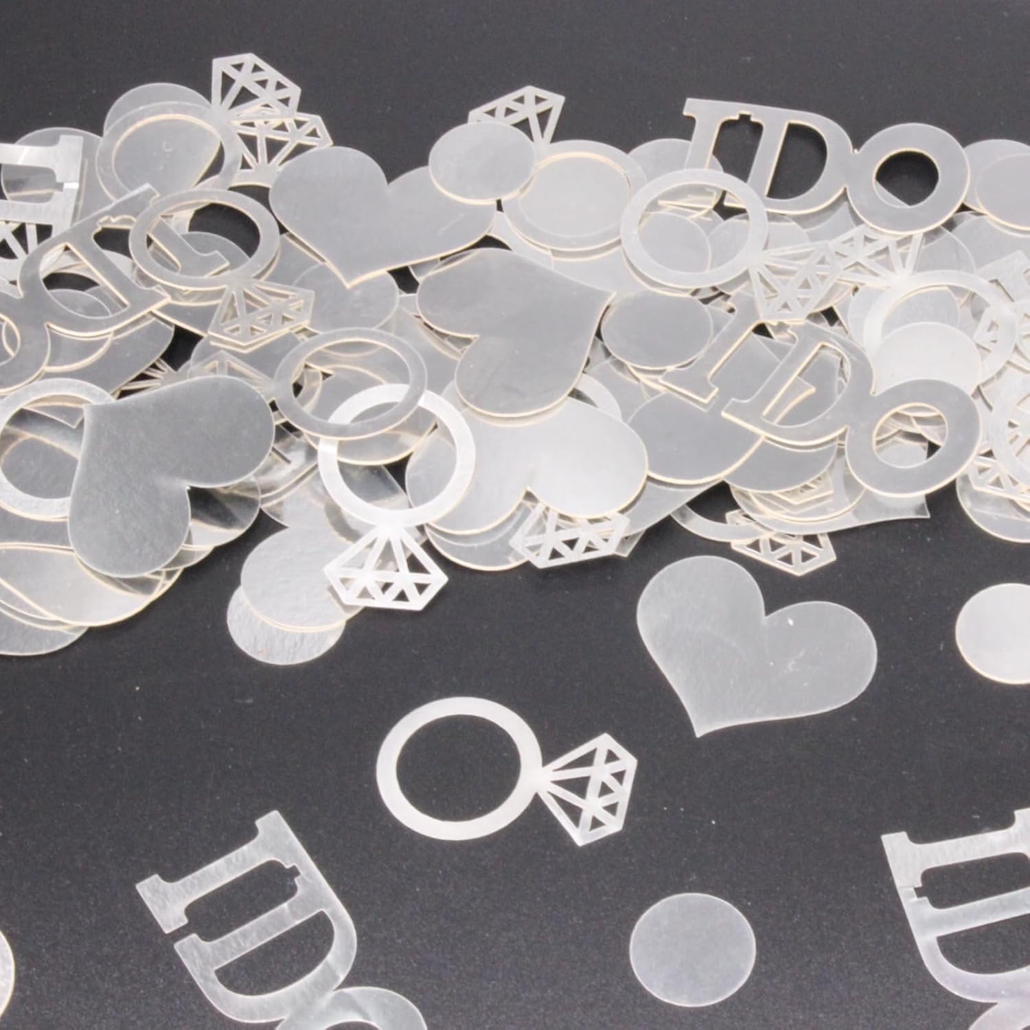 - Specification: There are a total of 4 different types of paper confetti, I DO confetti, diamond ring confetti, dots confetti and heart confetti. The total quantity is 160 pcs, it’s sufficient for wedding shower/bridal shower/engagement table decorations