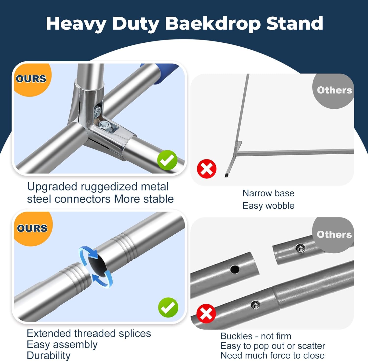 - ✅Wider Legs, Stronger Support - Extended 2ft/63cm legs enhance balance for tall backdrops, balloon garlands, or heavy floral installations.