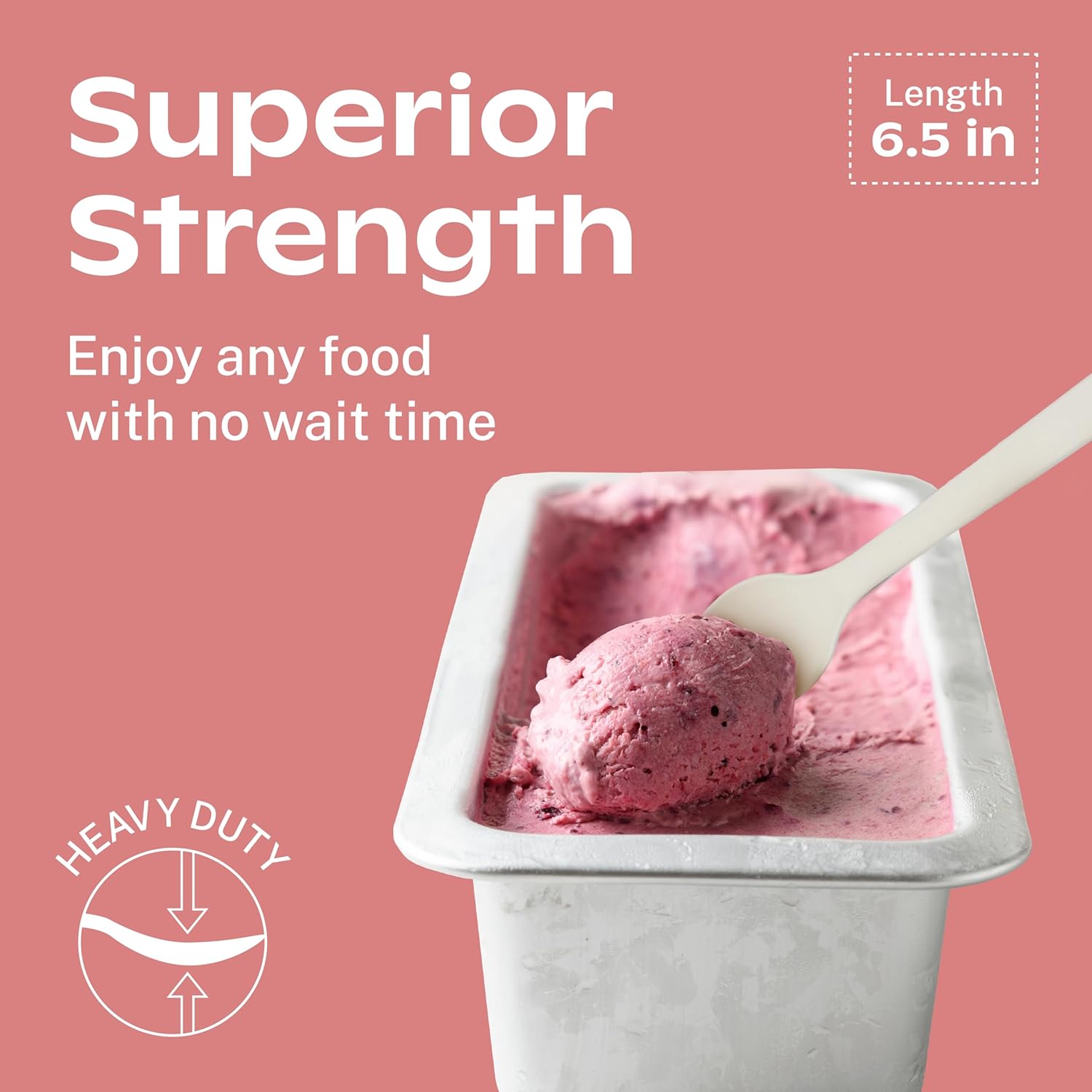 CORAL Ivory White 100% Compostable Spoons - 120 Heavy Duty No Plastic Spoons (6.5 inch) - Break Resistant with Smooth Edges, Ocean Friendly Alternative to Plastic Utensils - Biodegradable & Disposable