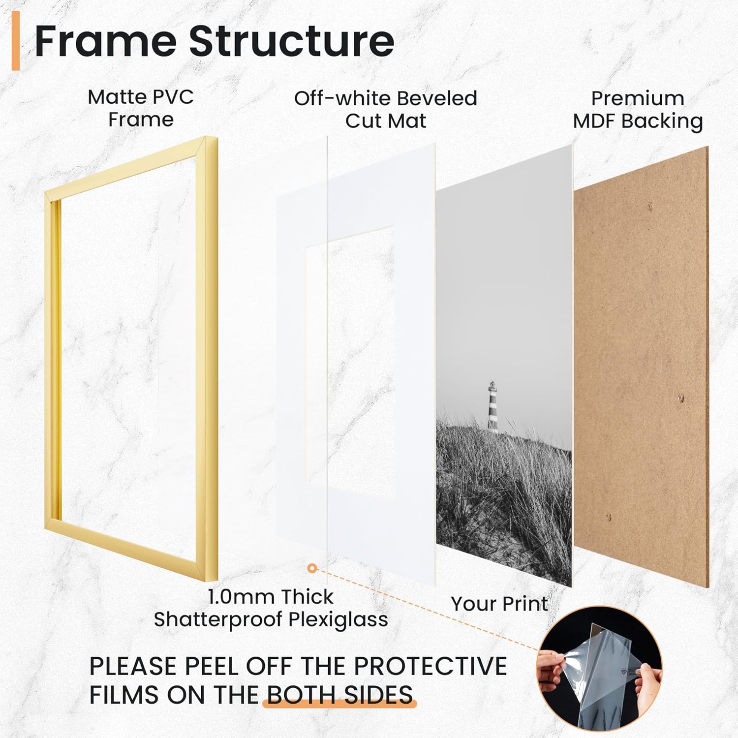 - High-Quality: Our 16x20 picture frame is made of environmentally friendly plastic, strong and durable. With a moisture-proof backplane design, the angle is hand-polished to stop scratching your skin. Use a polished polycarbonate board front to see your photos clearly.