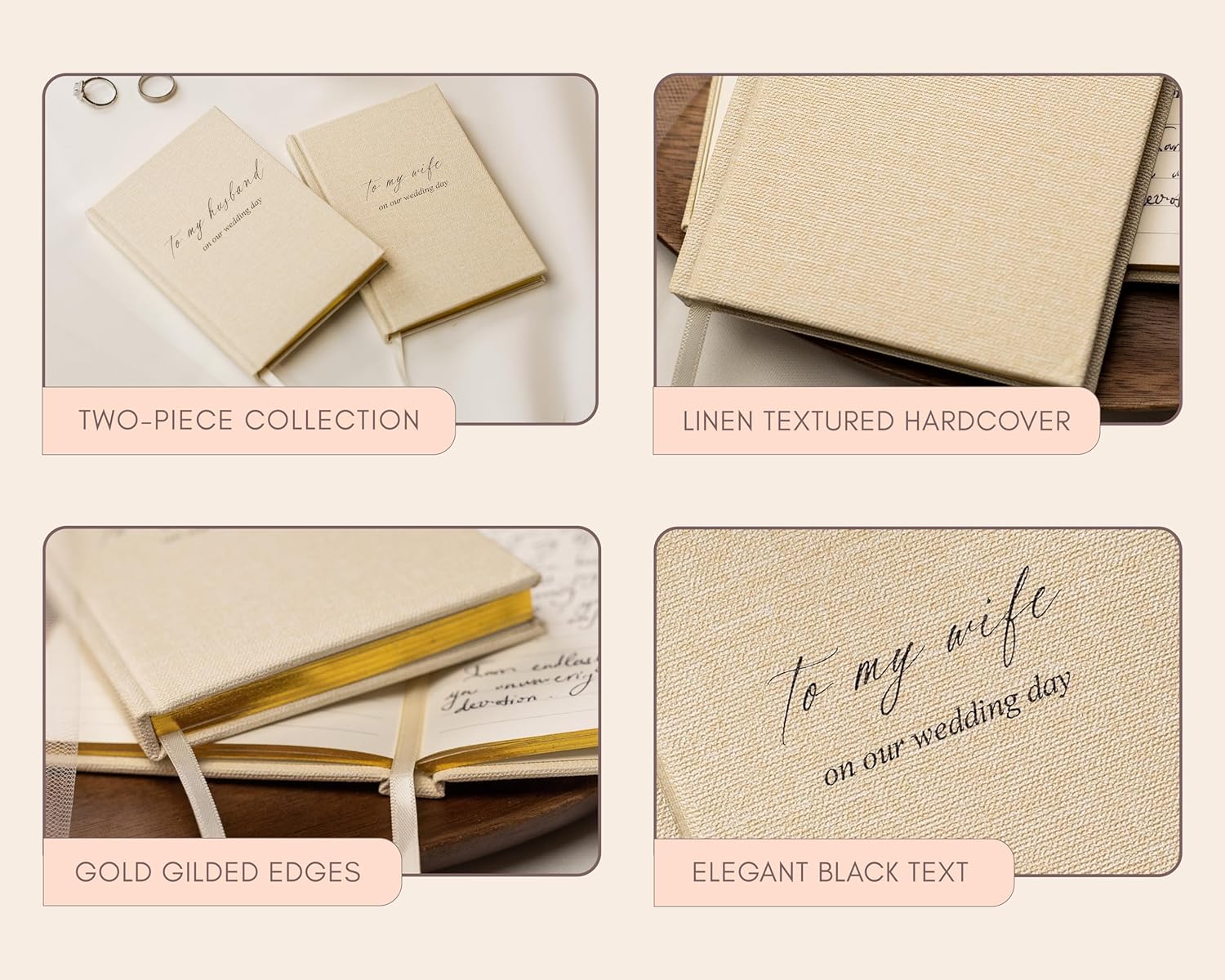- Each vow book is meticulously crafted with 140 gsm paper, ensuring durability and a luxurious feel. Each book contains 40 lined pages with gold gilded edges, adding a touch of elegance to your wedding day prop or bridal shower gift.