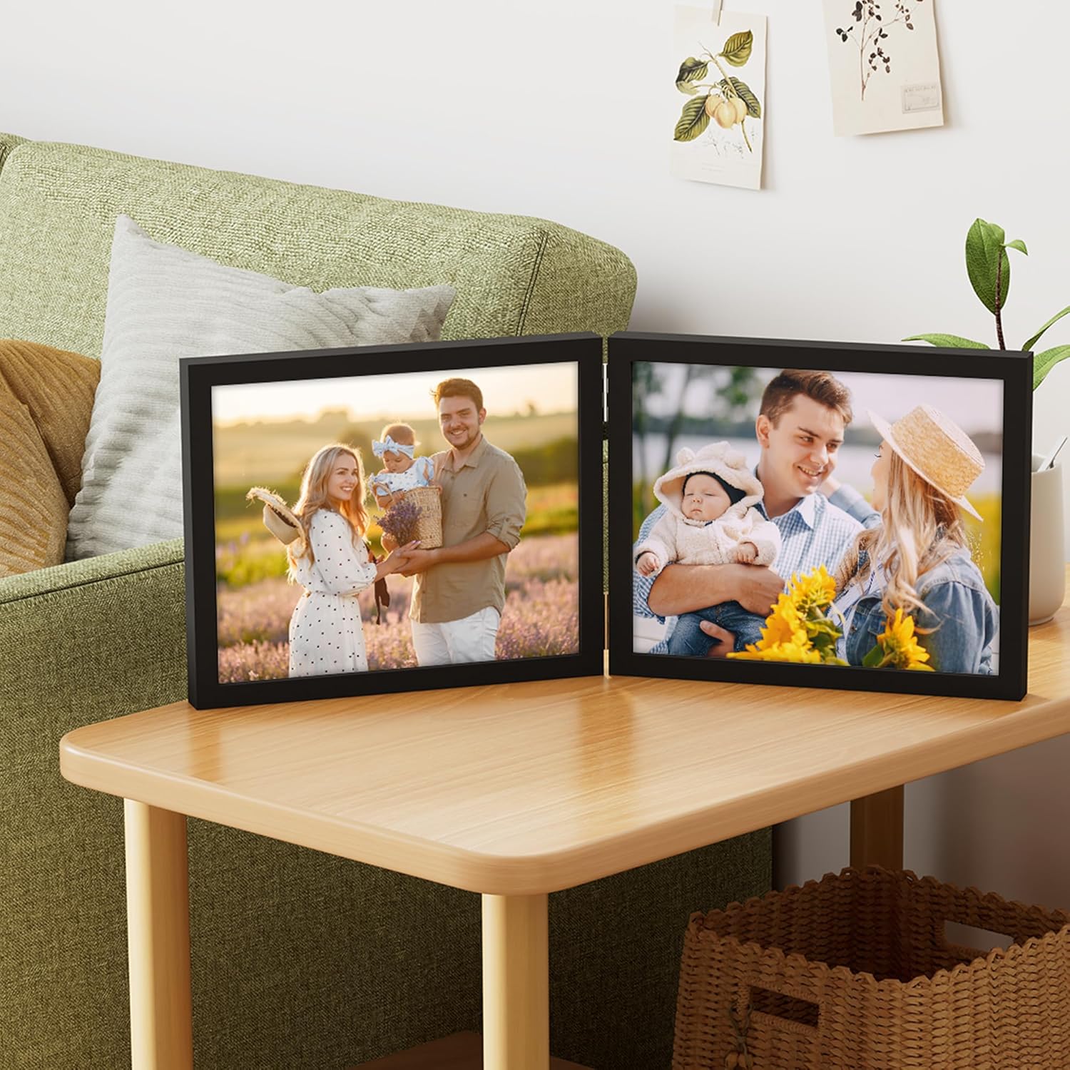 decorUhome Double 10x8 Picture Frame Vertical, Engineered Wood Bifold Photo Frame with Plexiglass for Tabletop Display, 10x8, Black