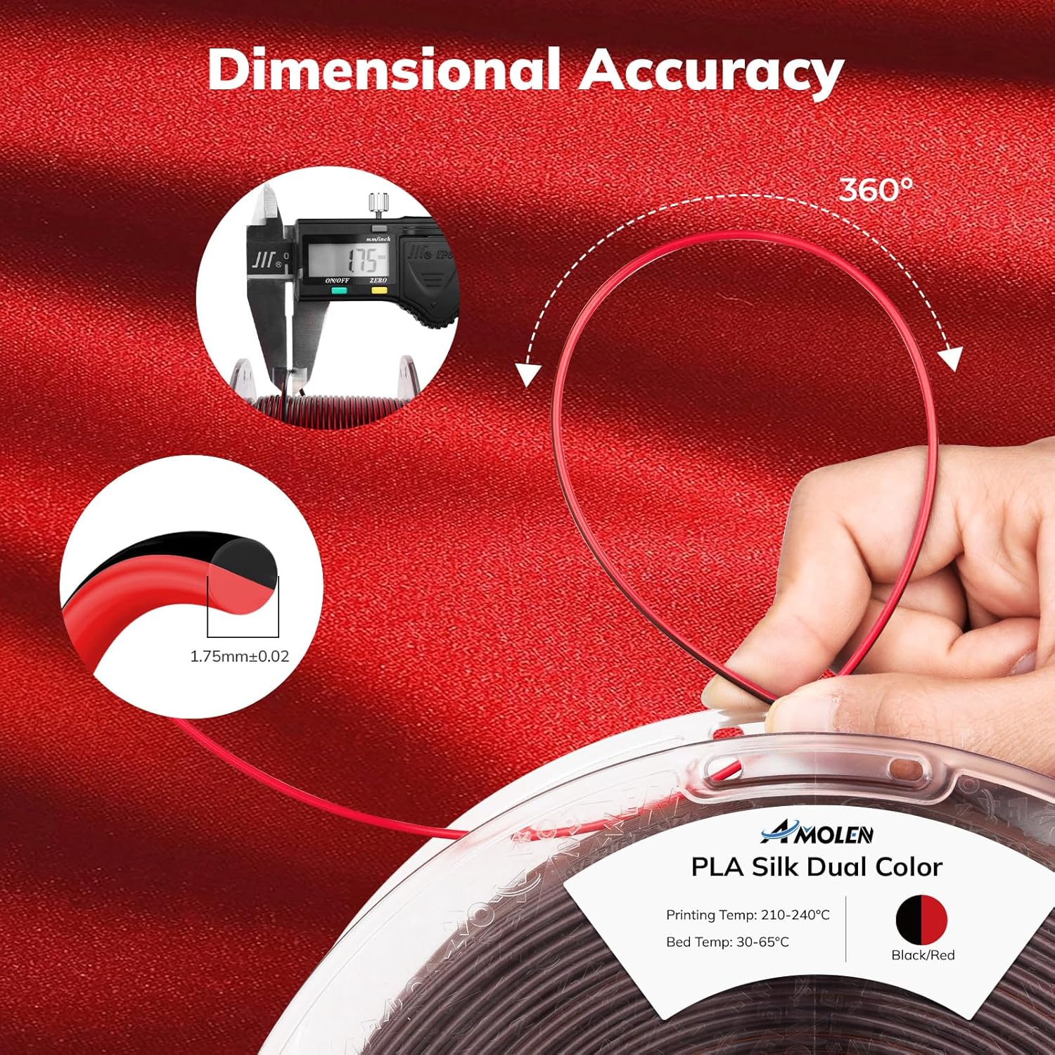 - 【Why Choose AMOLEN PLA Filament】User's mind and keeping innovation. Transparent spool shows more color of the 1.75mm pla filament. Sealed Vacuum Bags to keep the 3d filament dry and keep out dust, extending the lifespan of the dual color pla filament, fullfill your artistic creation