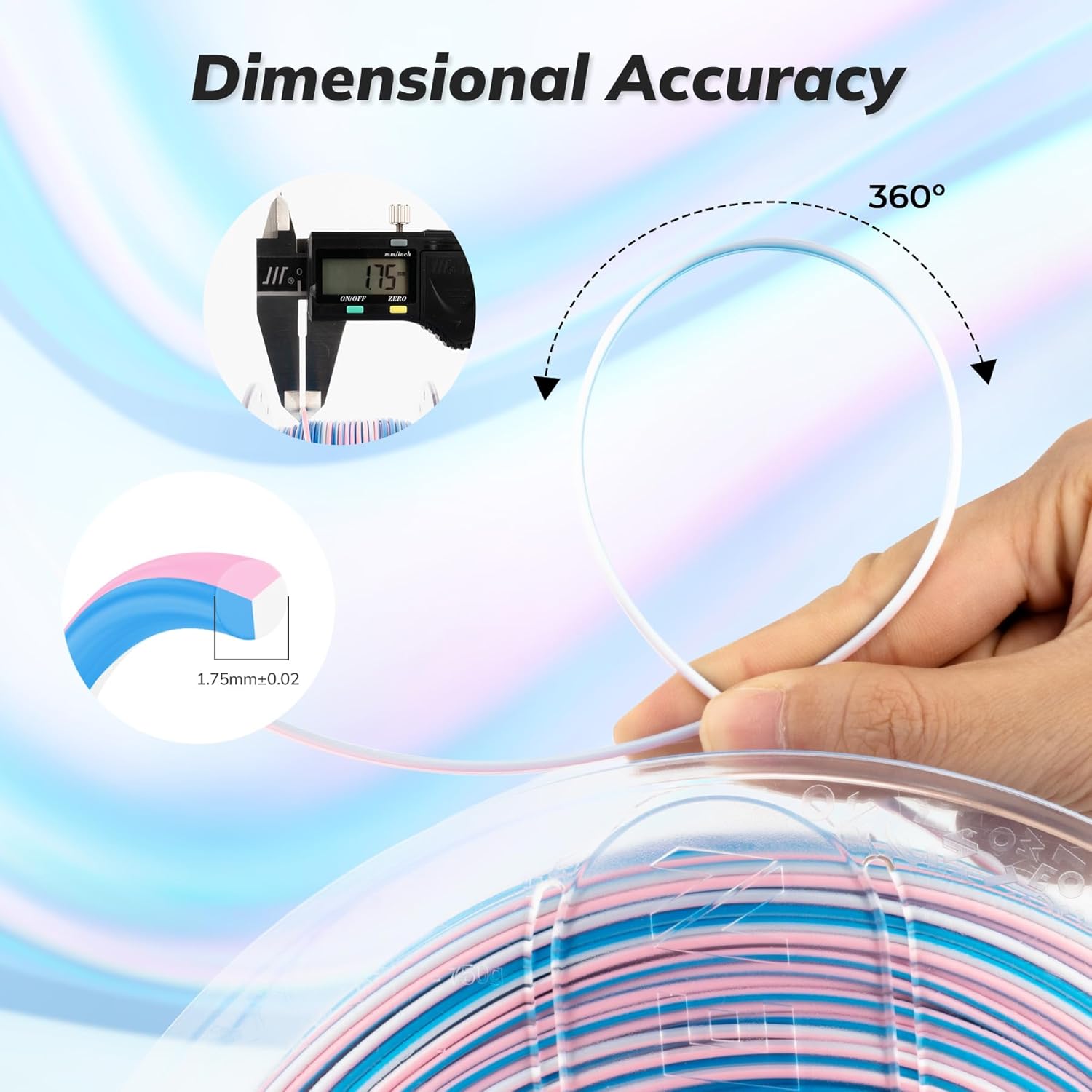 - Precision Printing: Achieve flawless prints with shiny silk rainbow PLA filament, engineered for ease of use and exceptional precision. With a product diameter of 1.75 mm and precision tolerance of +/- 0.02 mm, smooth and consistent results