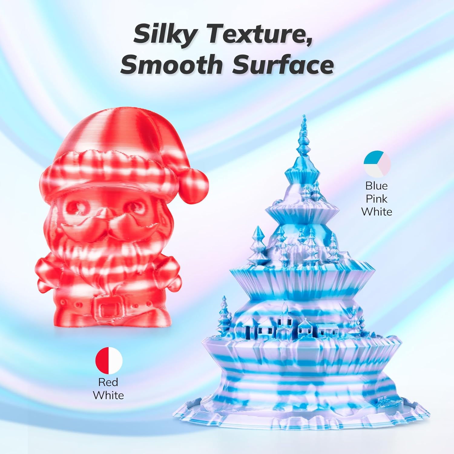 - Colorful Variety 2 Pack: Dive into the vibrant world of 3D printing with AMOLEN silk multicolor PLA filament pack, featuring stunning shades. Each color weighs 1 kg, providing a total of 2 kg. Even small models can display multiple colors