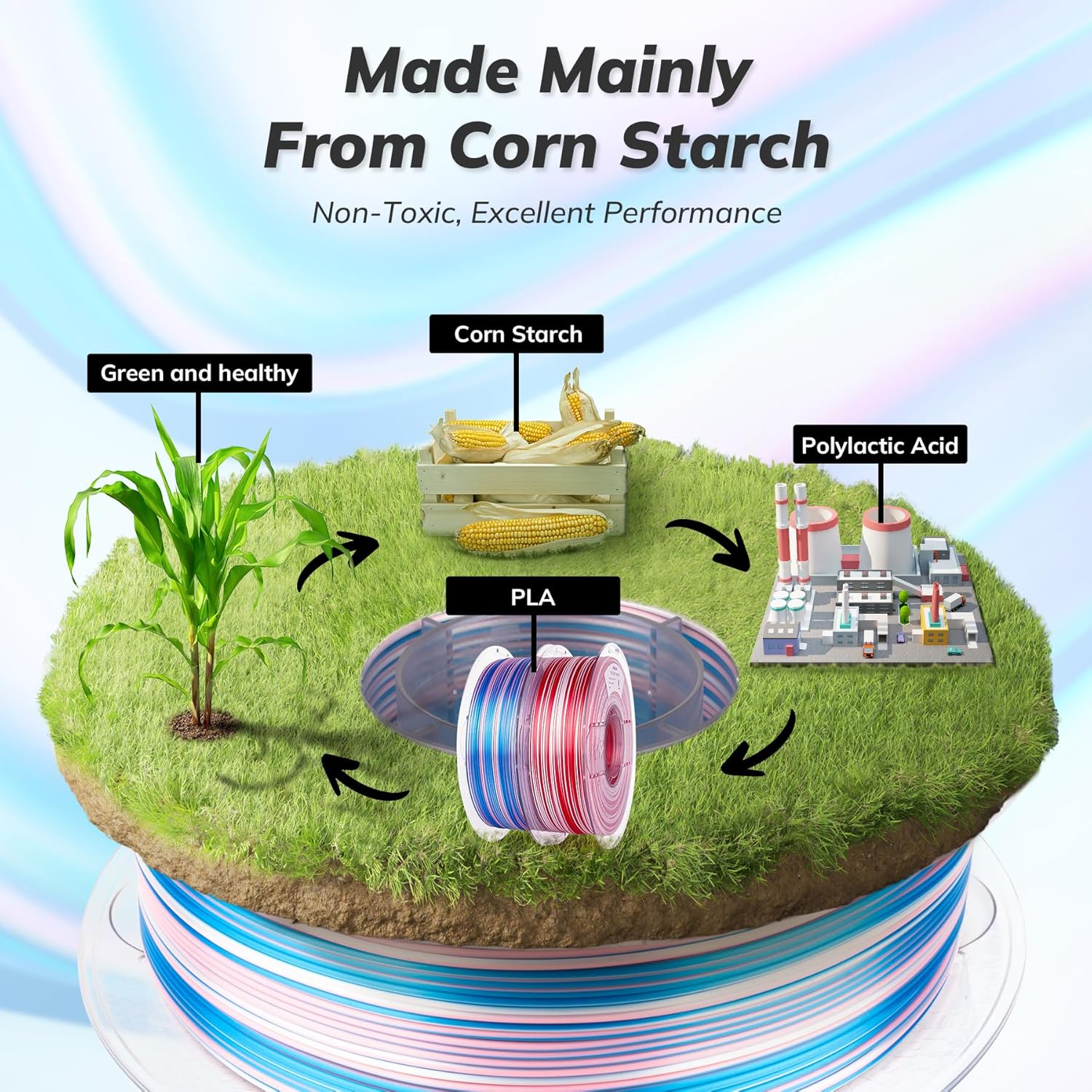 - Silk Multicolor Rainbow PLA: S-series is A line of multi-color spinning fast color change, spiral random color change bring your model more surprise effect. You can print beautiful multicolors in one PLA filament. Perfect for arts, crafts, DIY. Beginner & expert friendly