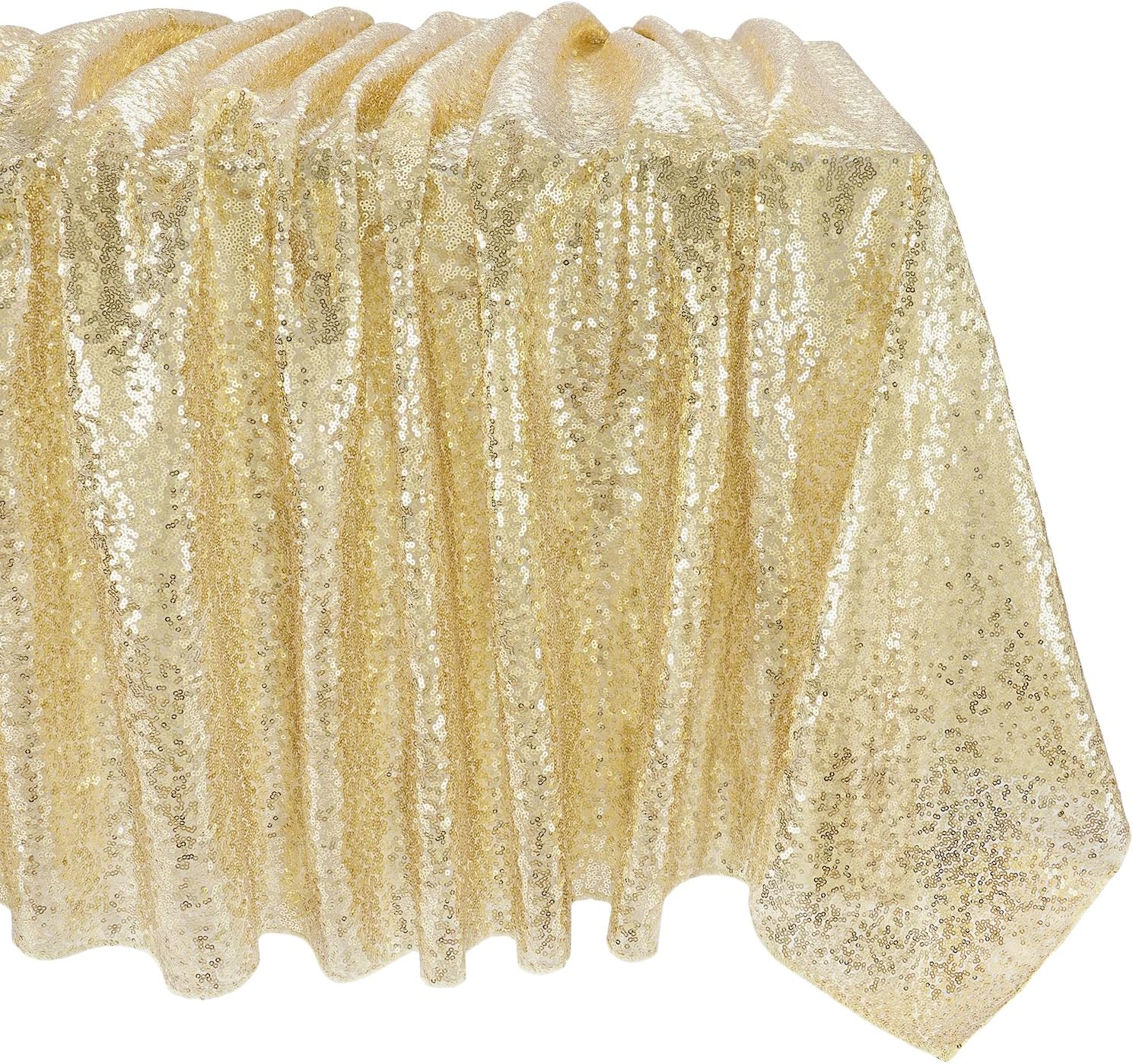 - Seamless Light Gold Sequin Tablecloth Size: 90" wide x 156" long. Image dimensions are for reference only, please choose the size according to your needs.