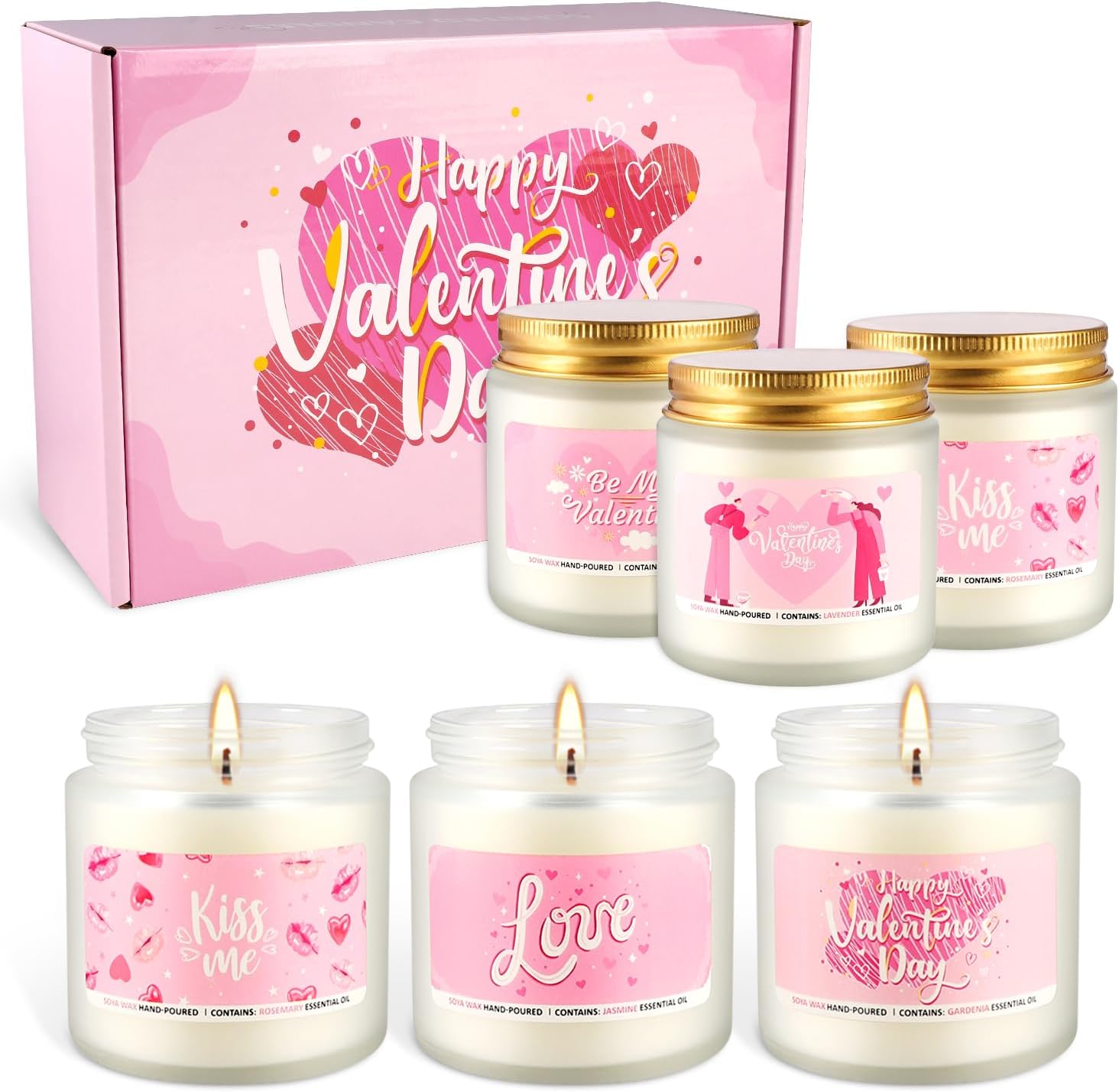 - 1.Romantic Valentine's Day Gift:This six-pack of Valentine's scented candles is a romantic gift designed specifically for Valentine's Day, bringing warmth and sweetness to your partner.