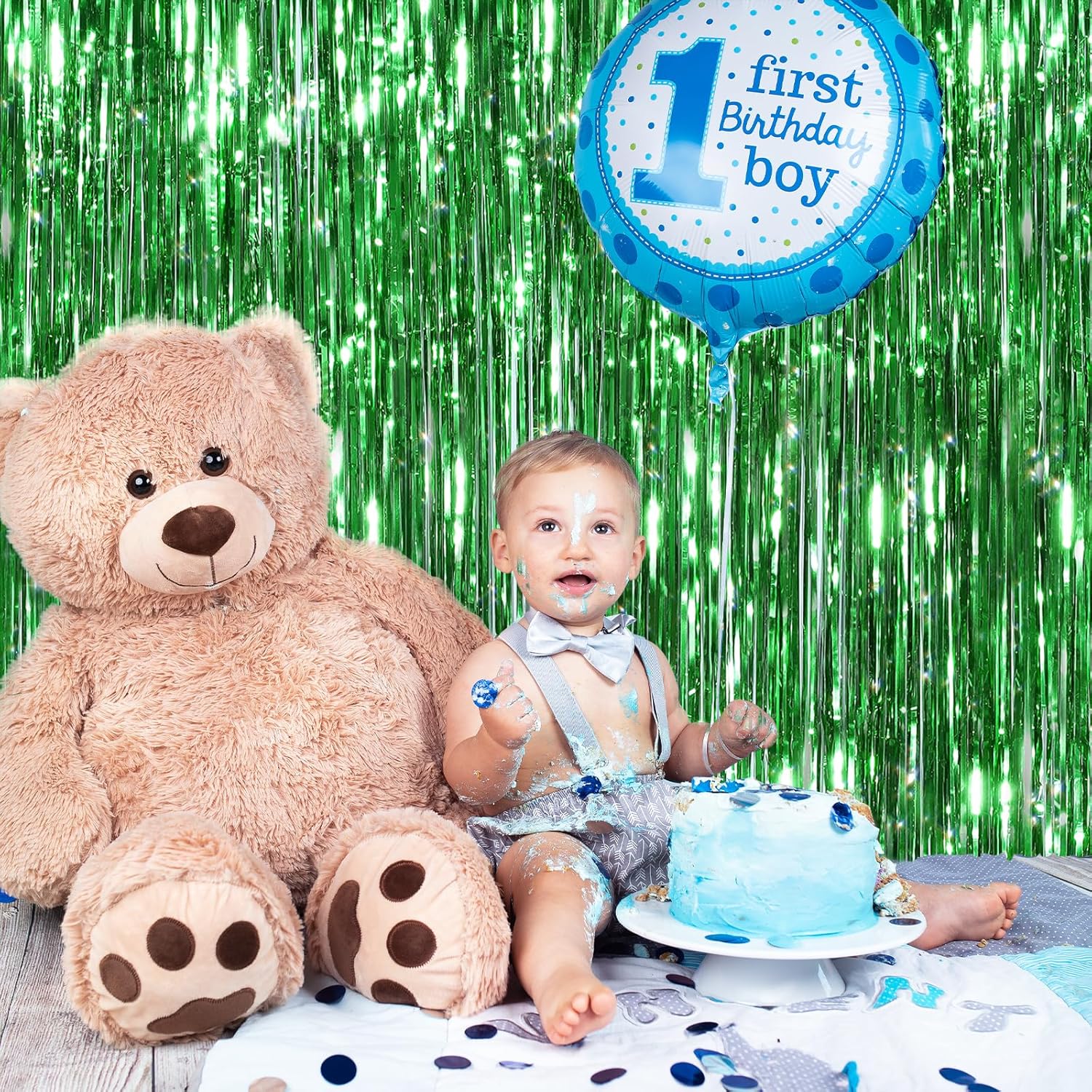 - Foil Fringe Backdrop: Includes 2 packs shiny Green foil fringe curtains, enough quantity for your party decoration. Each pack curtains size is 3.3 ft x 6.58 ft, enough length for decorate your party. Perfect accessories for decorating doors and walls. for creating a stunning backdrop for any occasion. shimmer tinsel backdrop curtain, you can make a beautiful entrance door curtain or a photo booth backdrop for your guests. They are perfect for christmas party.