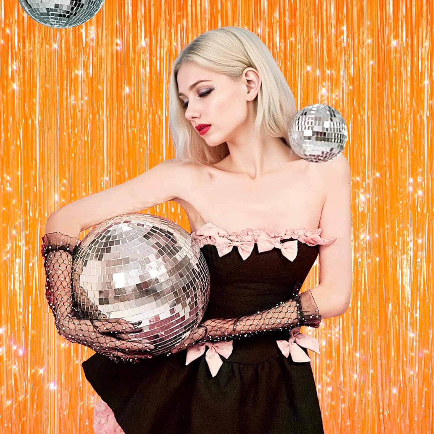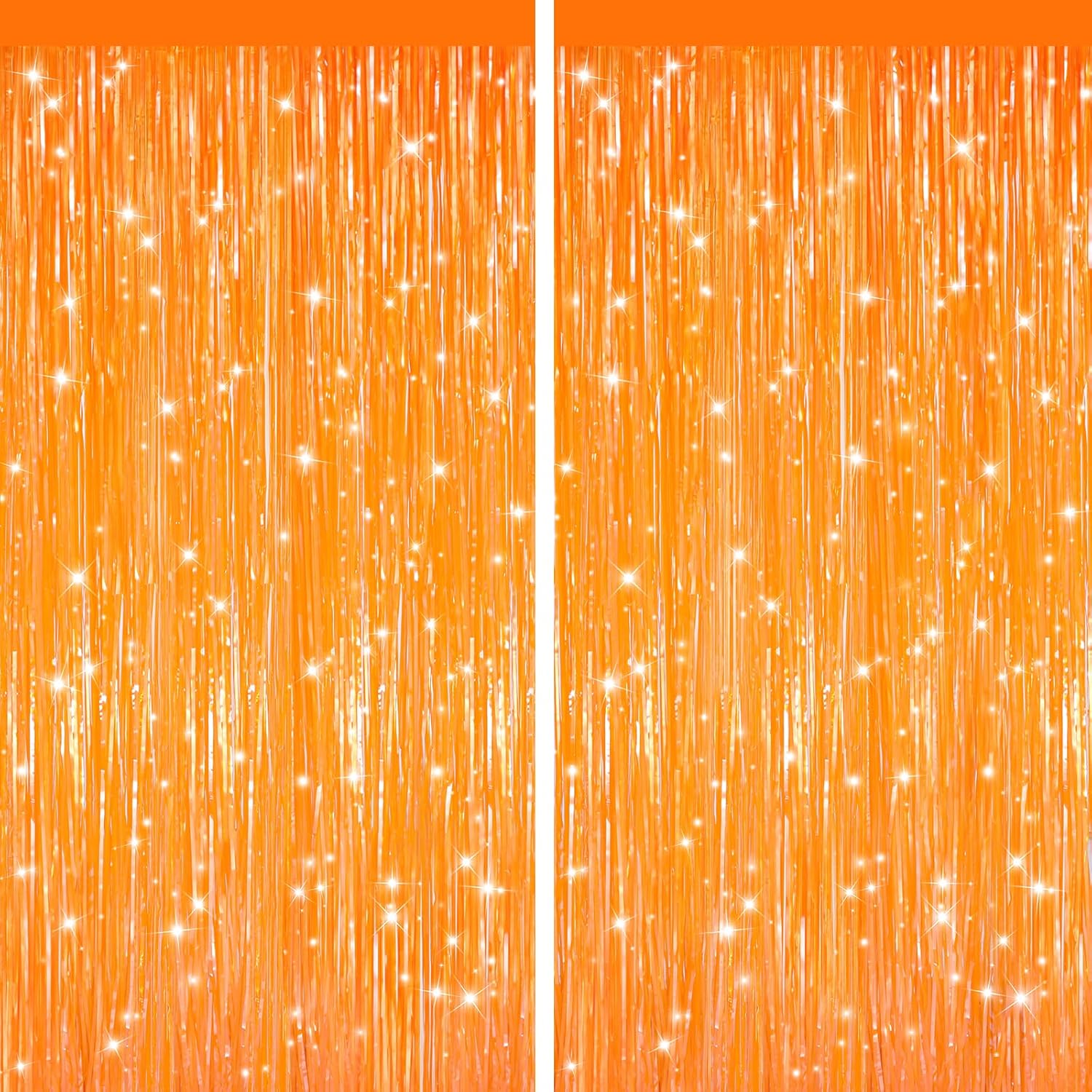 - Foil Fringe Backdrop: Includes 2 packs shiny Orange foil fringe curtains, enough quantity for your party decoration. Each pack curtains size is 3.3 ft x 6.58 ft, enough length for decorate your party. Perfect accessories for decorating doors and walls. for creating a stunning backdrop for any occasion. shimmer tinsel backdrop curtain, you can make a beautiful entrance door curtain or a photo booth backdrop for your guests. They are perfect for christmas party.