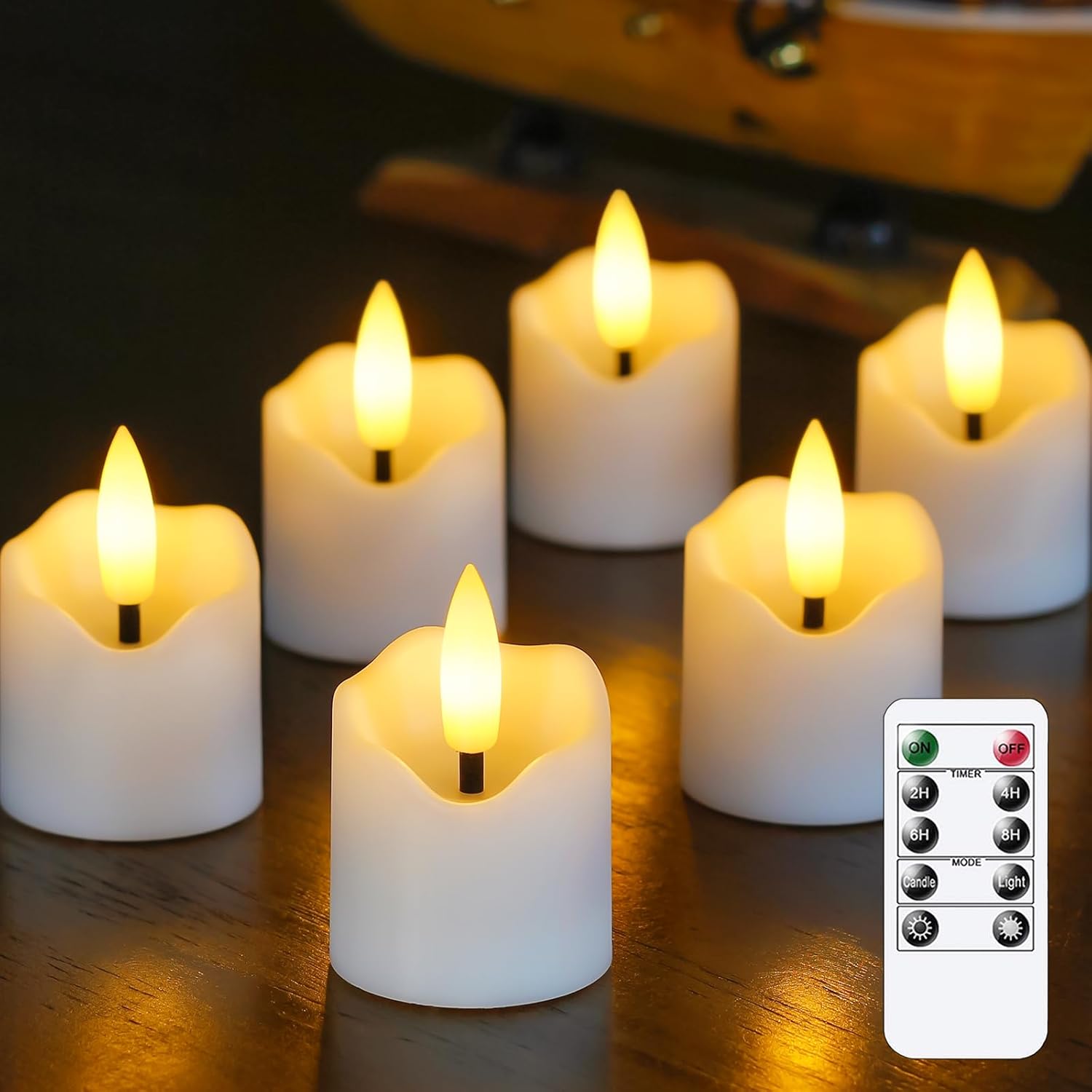 - Convenient Timer for Automatic Operation: The included remote control allows you to set timers for 2, 4, 6, or 8 hours. Once programmed, the flameless votive candles will automatically turn on and off at the same time each day, creating convenient and consistent ambiance